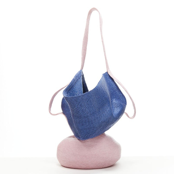 new ROSIE ASSOULIN Jug sculptural pink blue flared raffia woven basket bag