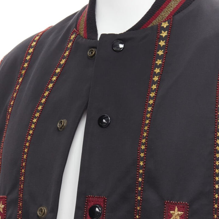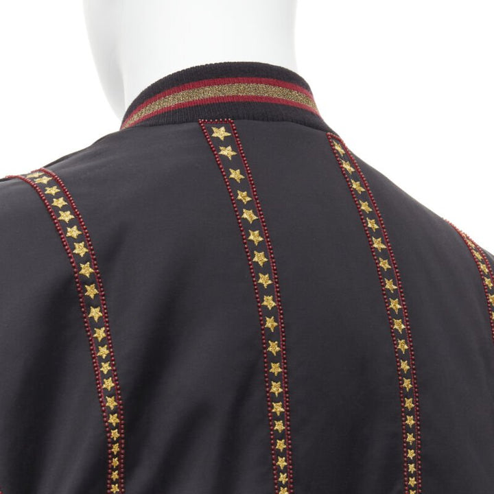 new SAINT LAURENT 2018 Teddy satin gold star embellished bomber jacket EU52 XL