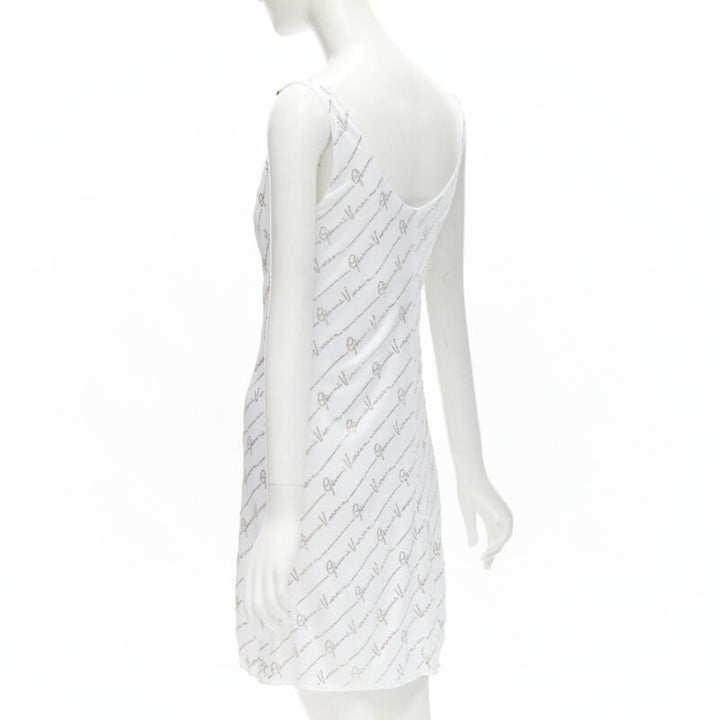 Runway VERSACE Gianni Signature white silver crystal Medusa dress IT44 L
