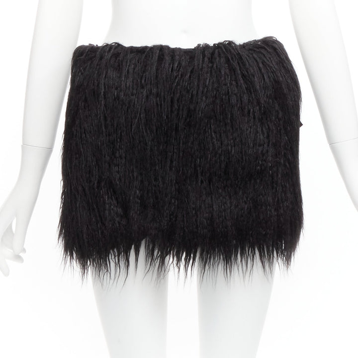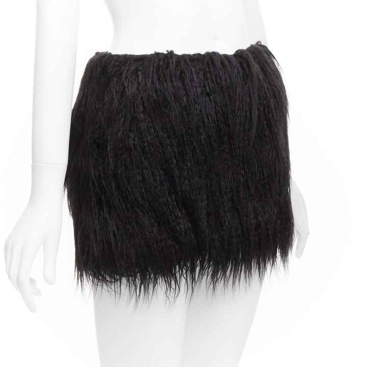 new SAINT LAURENT 2021 Runway black faux fur mini skirt FR34 XS