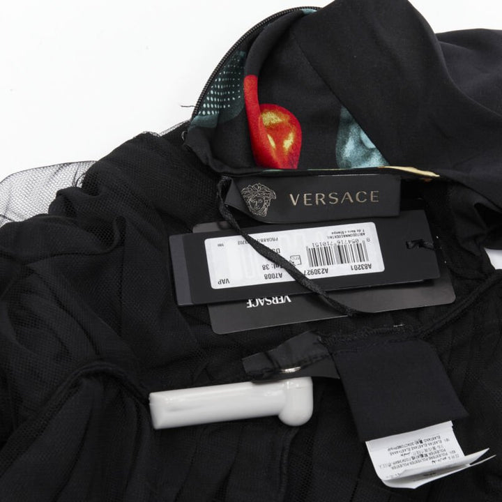 new VERSACE 2019 Runway Jim Dine heart print gold safety pin dress IT38 XS