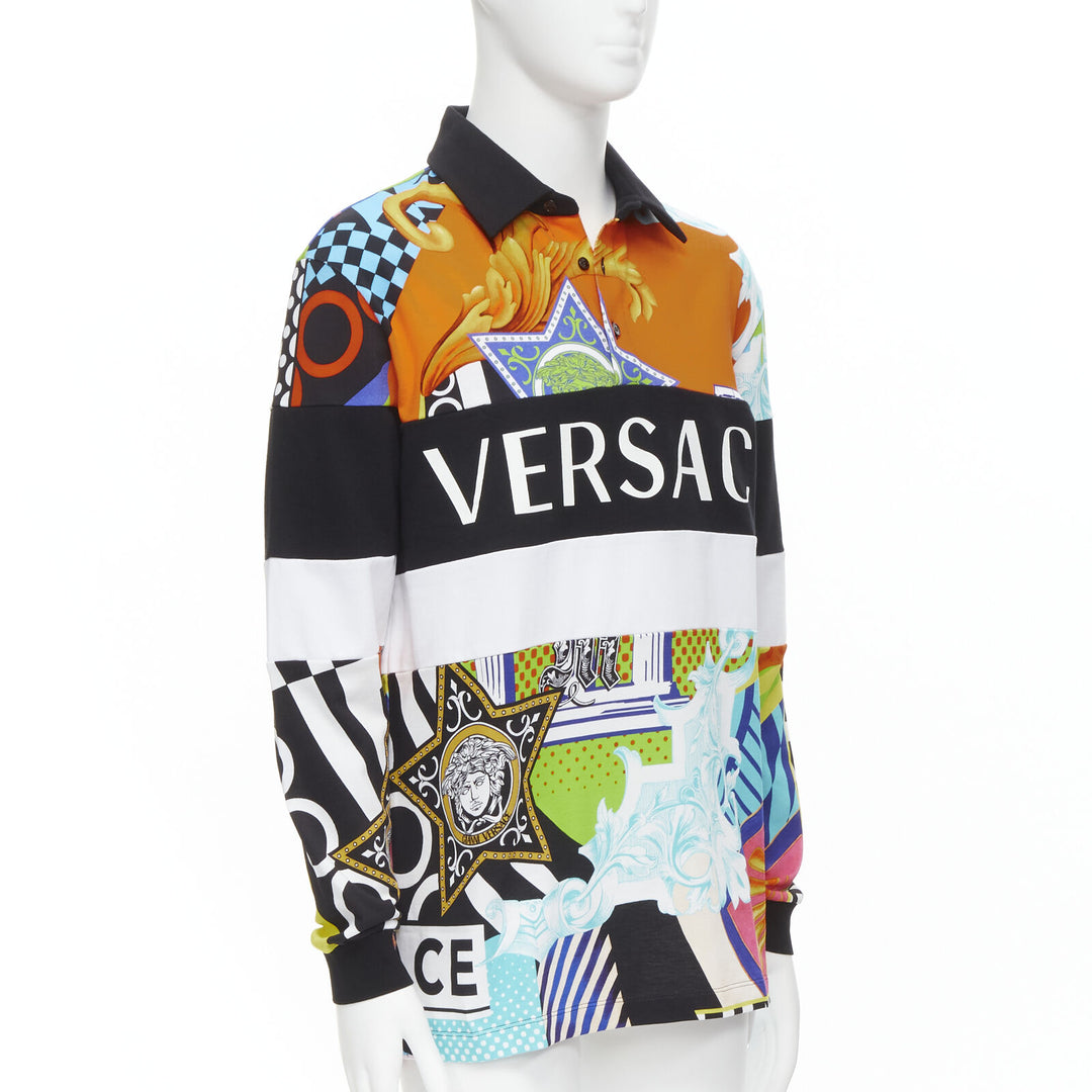 new VERSACE 2020 Runway Pop Temple Box logo patchwork polo shirt top L