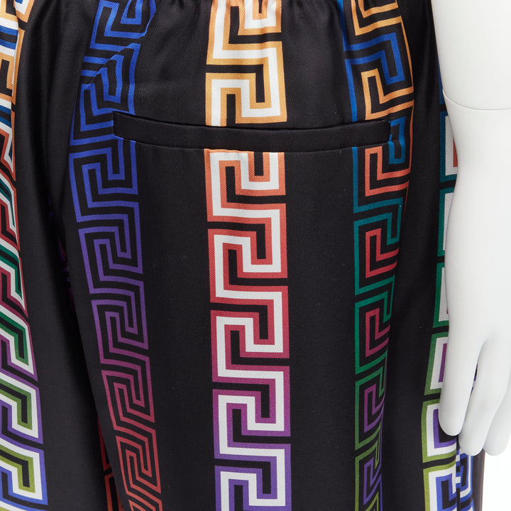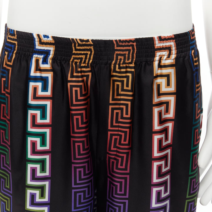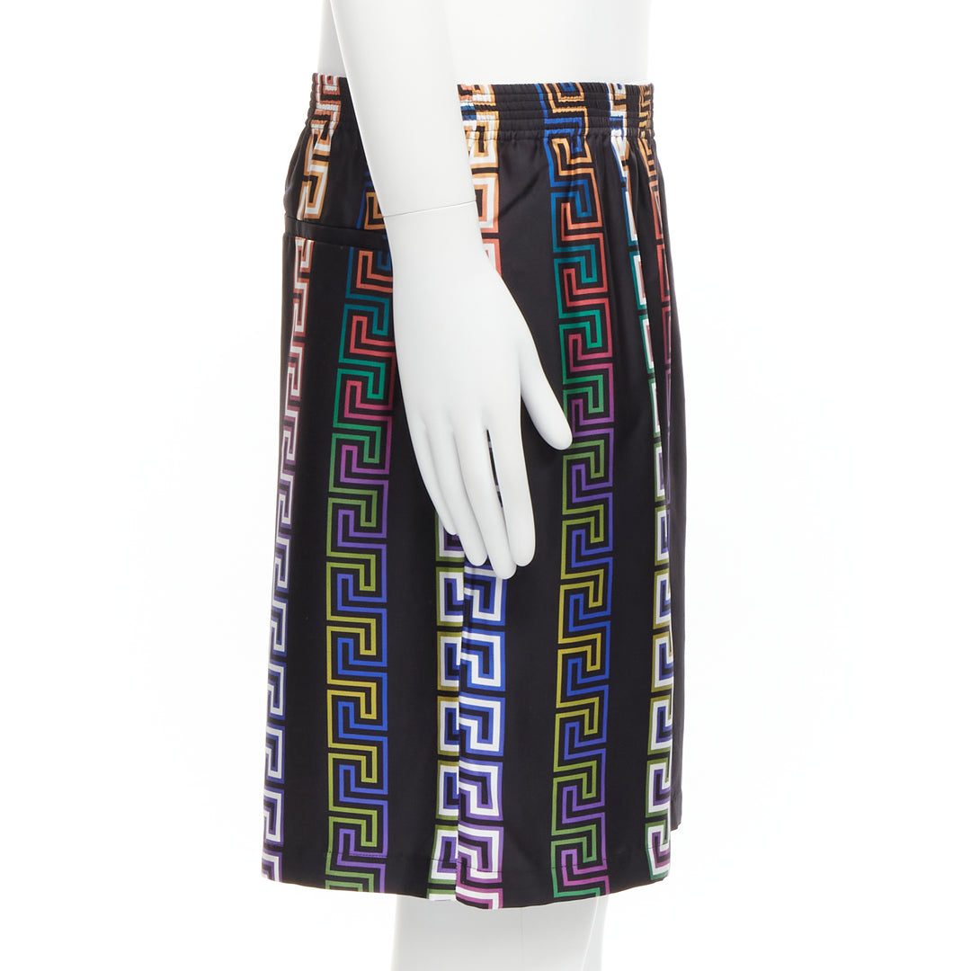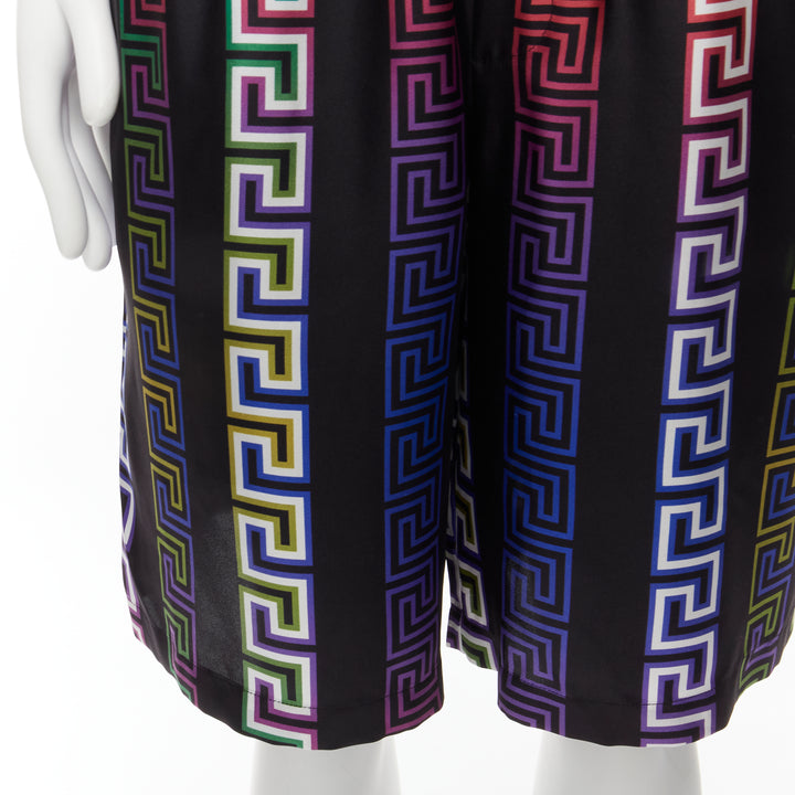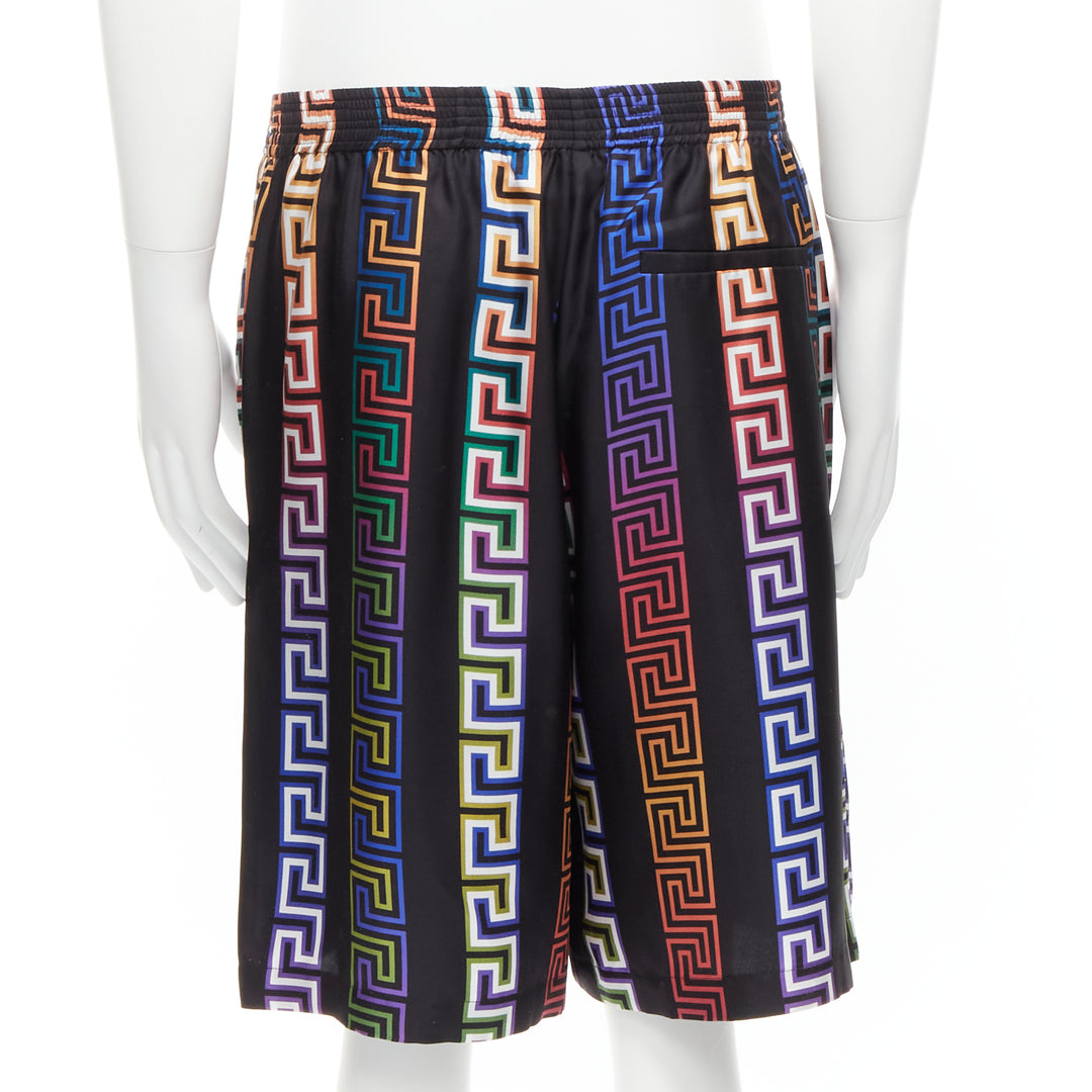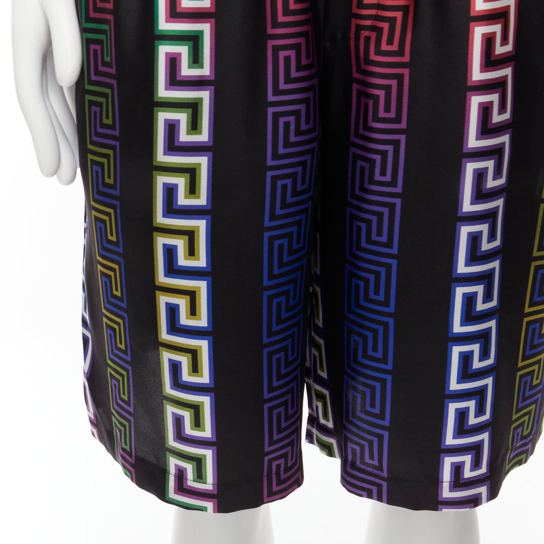 new VERSACE 2021 Runway Neon Greca black college fit silk twill shorts IT46 S