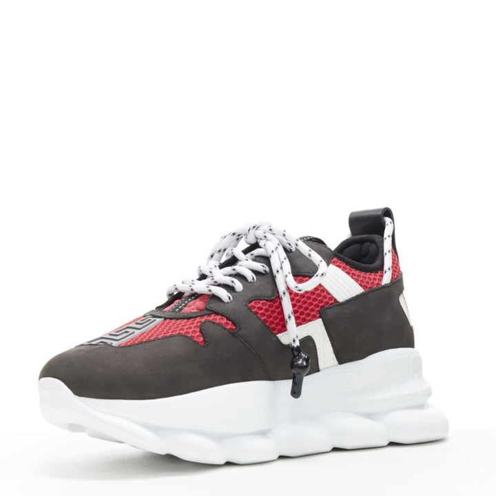 new VERSACE Chain Reaction Black Red suede low top chunky sneaker EU38.5 US5.5