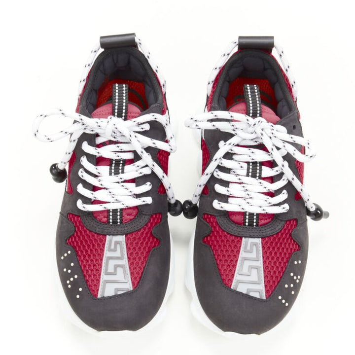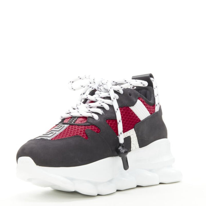VERSACE Chain Reaction black suede red chunky sneaker EU36 US6