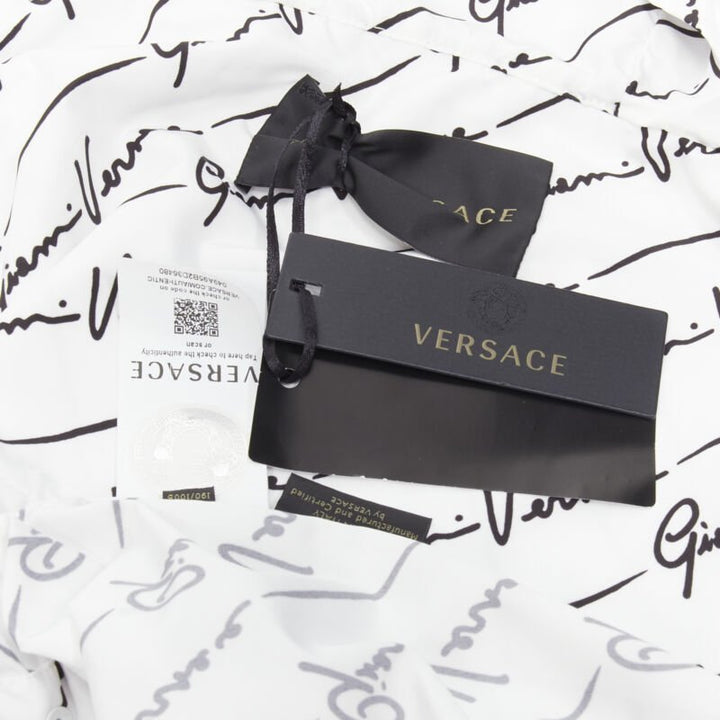 new VERSACE Gianni Signature white black nylon hooded windbreaker jacket IT46 S