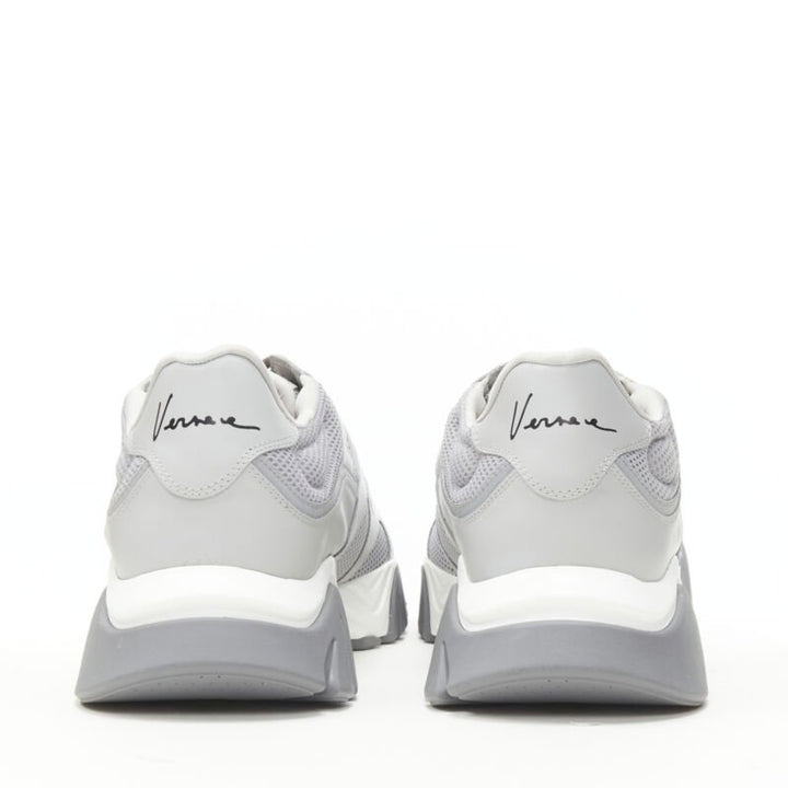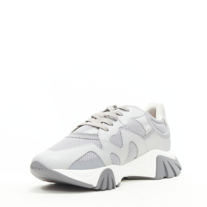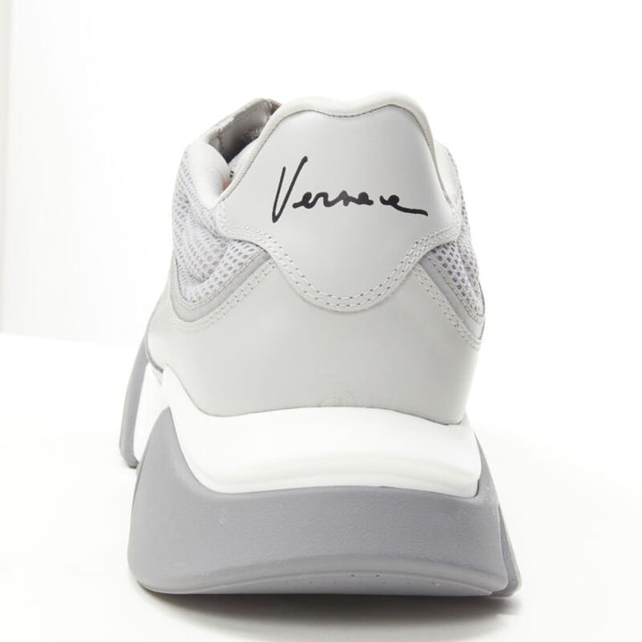 new VERSACE Squalo grey leather mesh chunky sneakers K48 EU45 US12