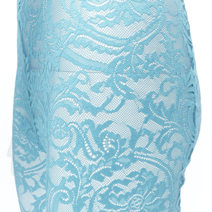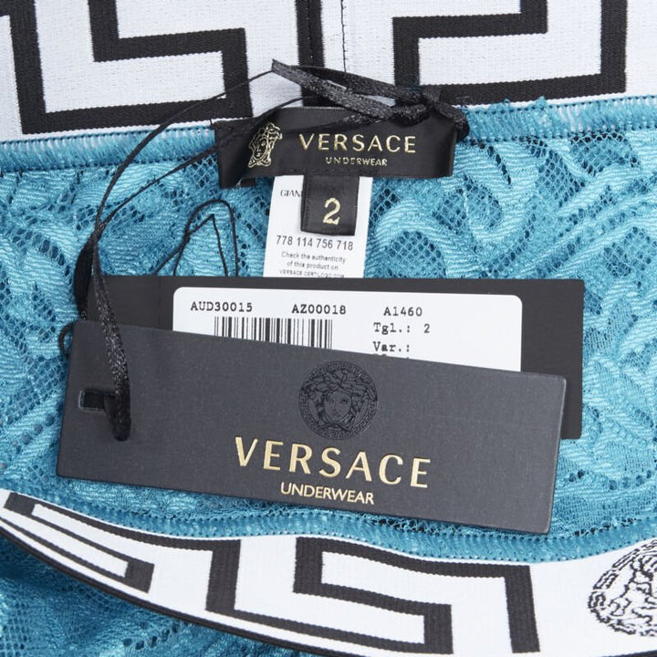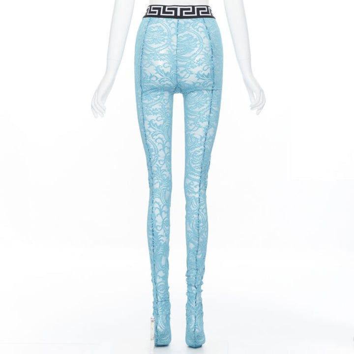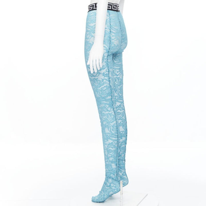 new VERSACE Underwear Medusa Greca waist band blue floral lace tights L