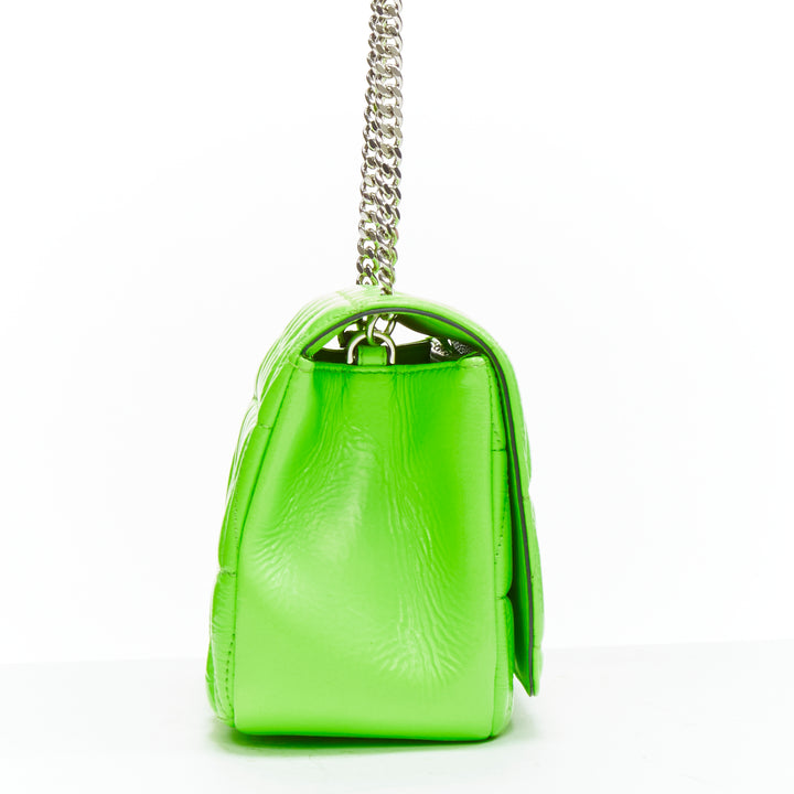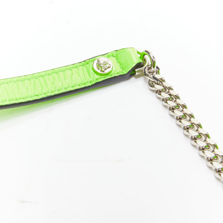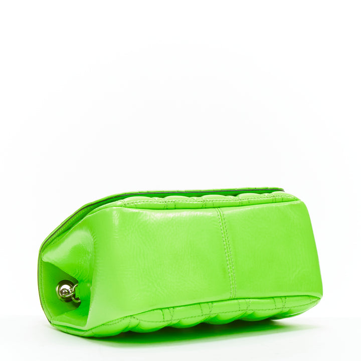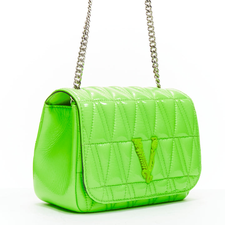 new VERSACE Virtus bright green V quilted patent leather crossbody flap bag