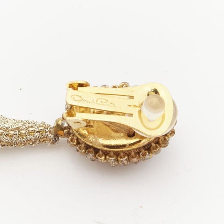 OSCAR DE LA RENTA Large Starfish gold bead embellished clip on earrings