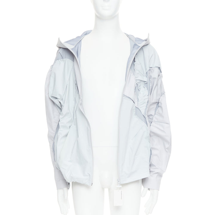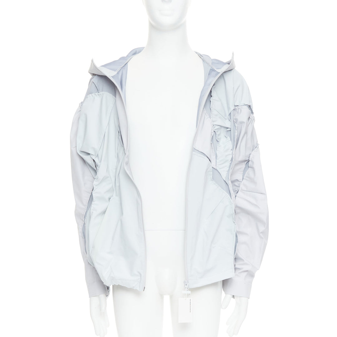Extra Details: 6.0 TECHNICAL JACKET LEFT (ICE). Technical jacket with color contrasting panels asymmetrically arranged along the crack-lines. Darts placed along the line creates a distinctive volume and silhouette. South Korean fabrics. Membrane coated, water repellent, and breathable 3-layer light performance fabrics.Stretchable and durable fabric. YKK VISLON® AquaGuard® zipper at front. 2 pockets at front with bartack finish. Hem with elastic string and logo engraved stopper.