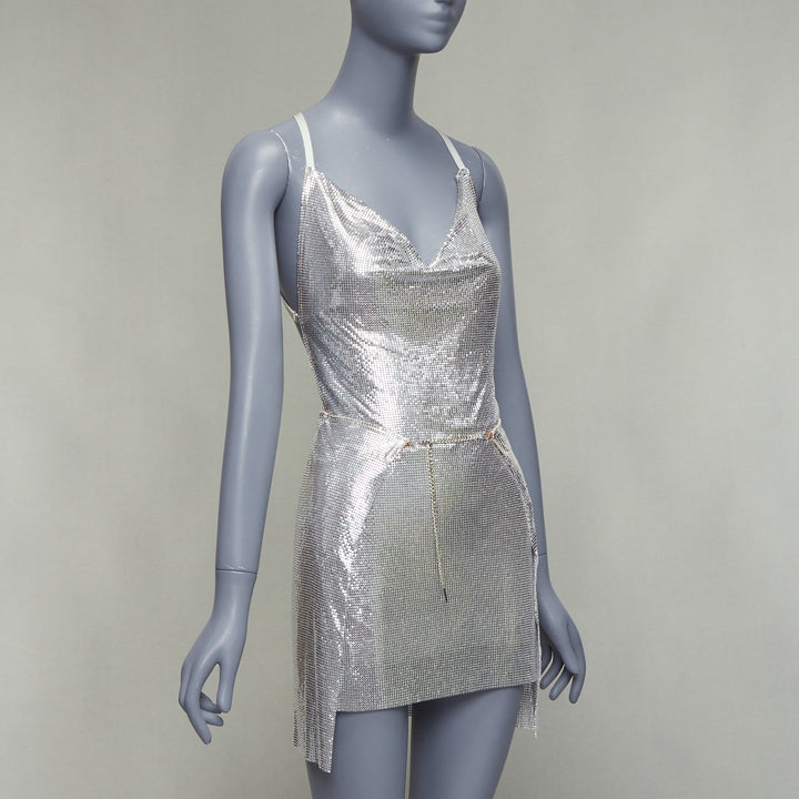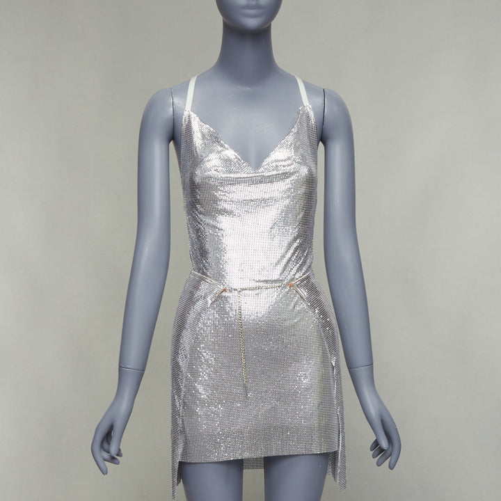 POSTER GIRL Adrianne 100% aluminium silver chainmail top skirt dress XS