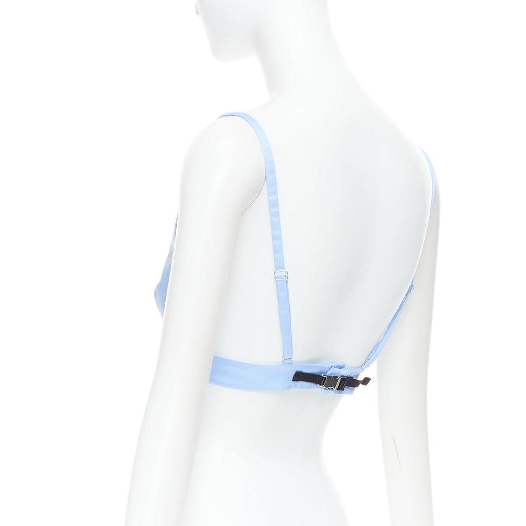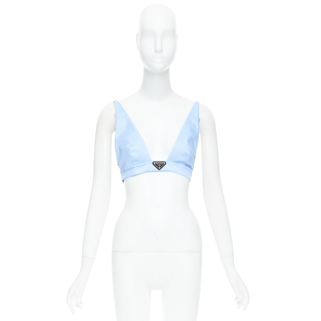 PRADA Re-Nylon light blue triangle logo plunge crop top bustier bralette IT38 XS