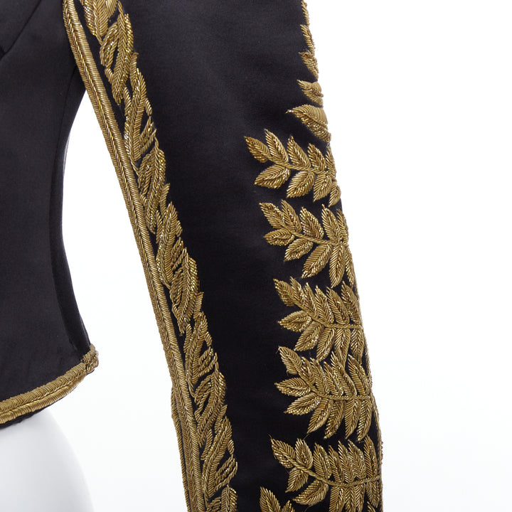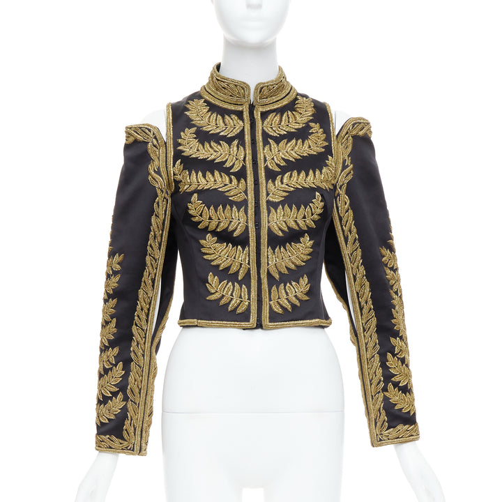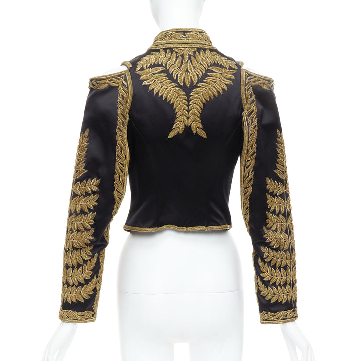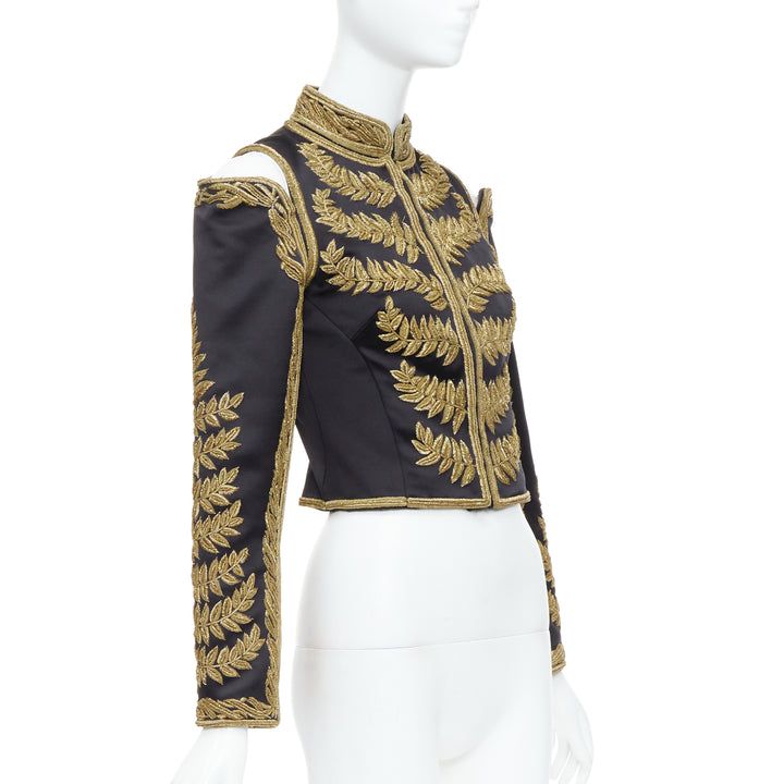rare ALEXANDER MCQUEEN 2011 Runway black gold foliage embroidery crop military jacket IT38 XS