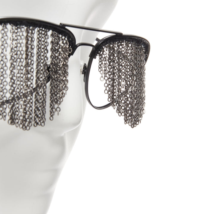 rare BLESS Duo Fringe black chain no lens aviator sunglasses