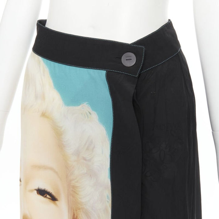 rare LOEWE Pop Art lady portrait photo print crystal embellished wrap skirt FR36 XS
