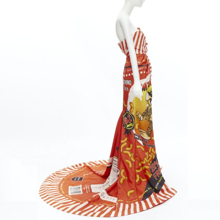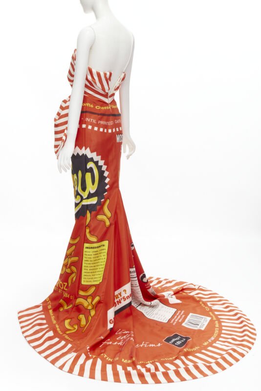 rare MOSCHINO Couture! 2014 Runway orange Cheetos Junk Food bow gown IT38 XS