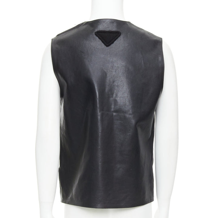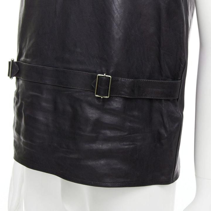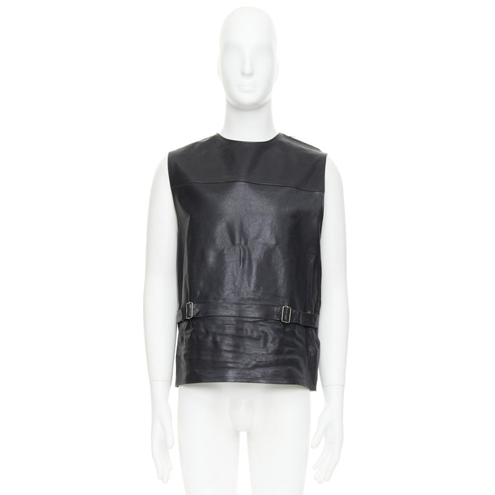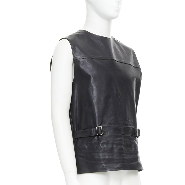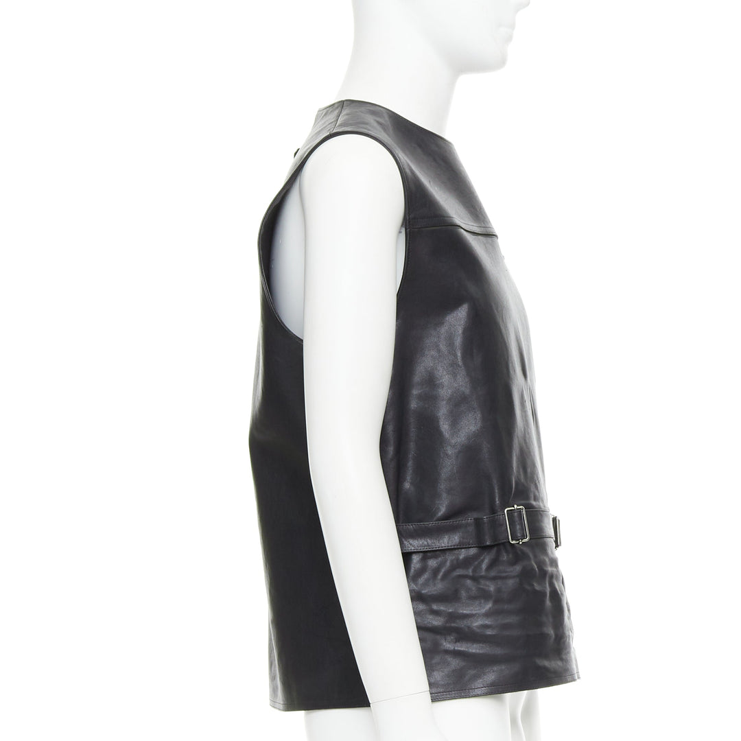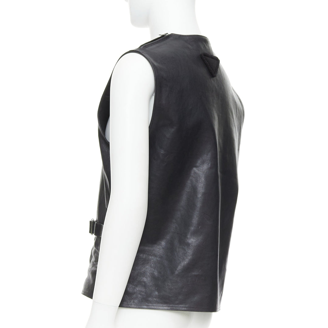 rare PRADA 2023 Runway Raf Simons Vitello black calfskin leather buckle vest IT48 M