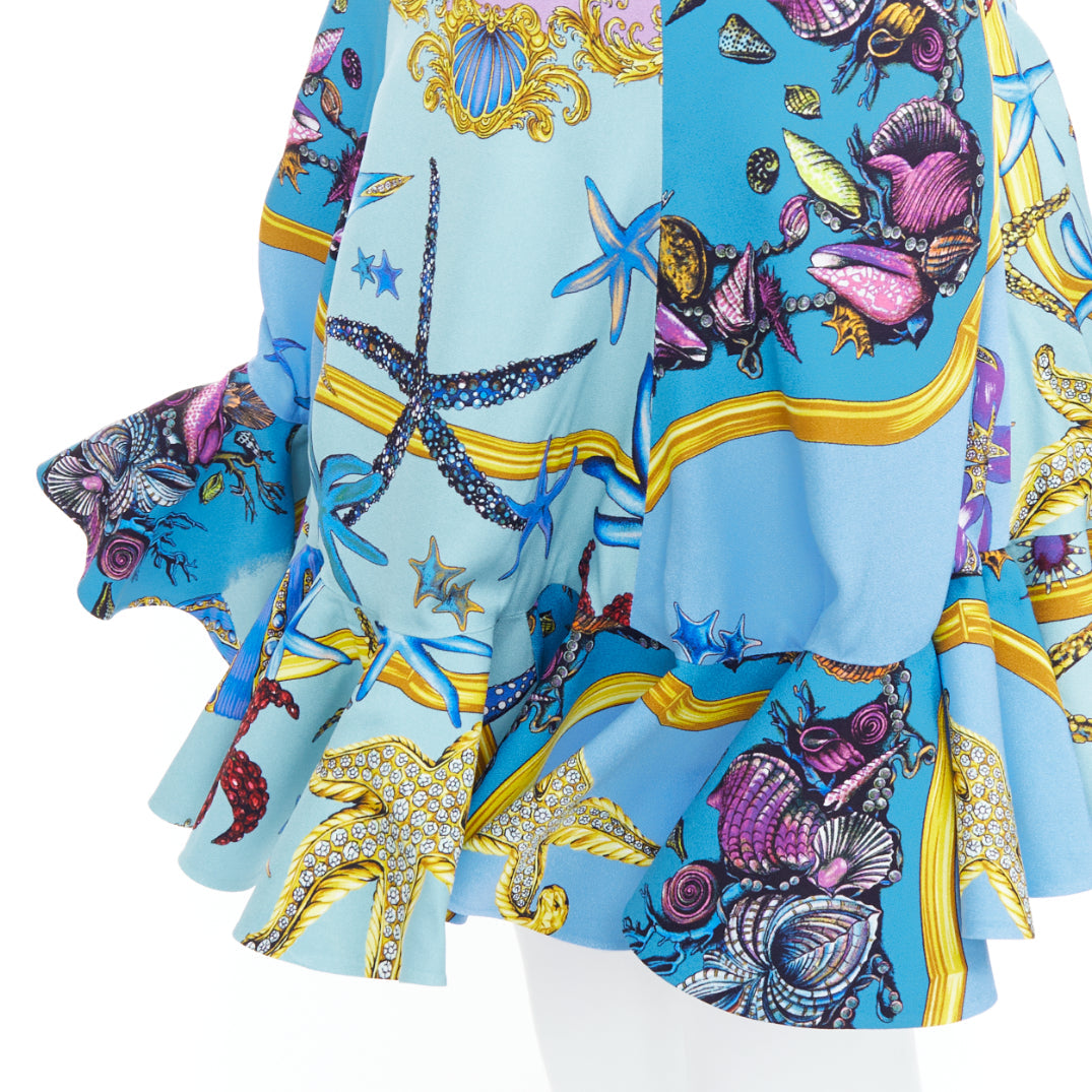 rare VERSACE 2021 Runway Tresor de la Mer blue starfish flounce flutter skirt IT42 M