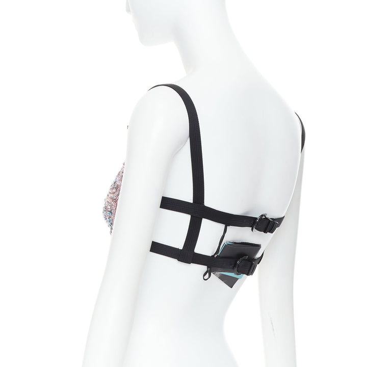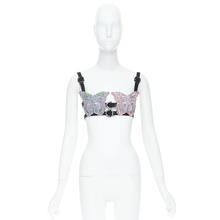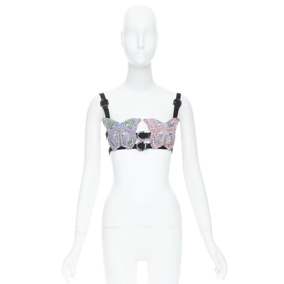 rare VERSACE Dua Lipa 2023 Vacanza Runway crystal butterfly bondage bra IT36 XXS