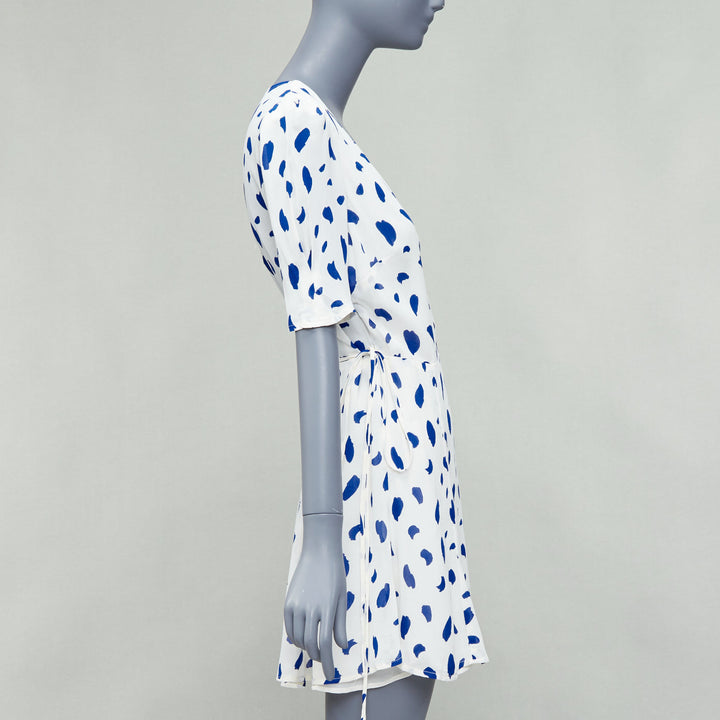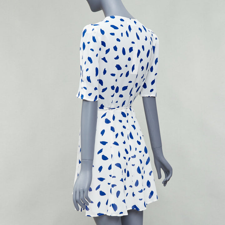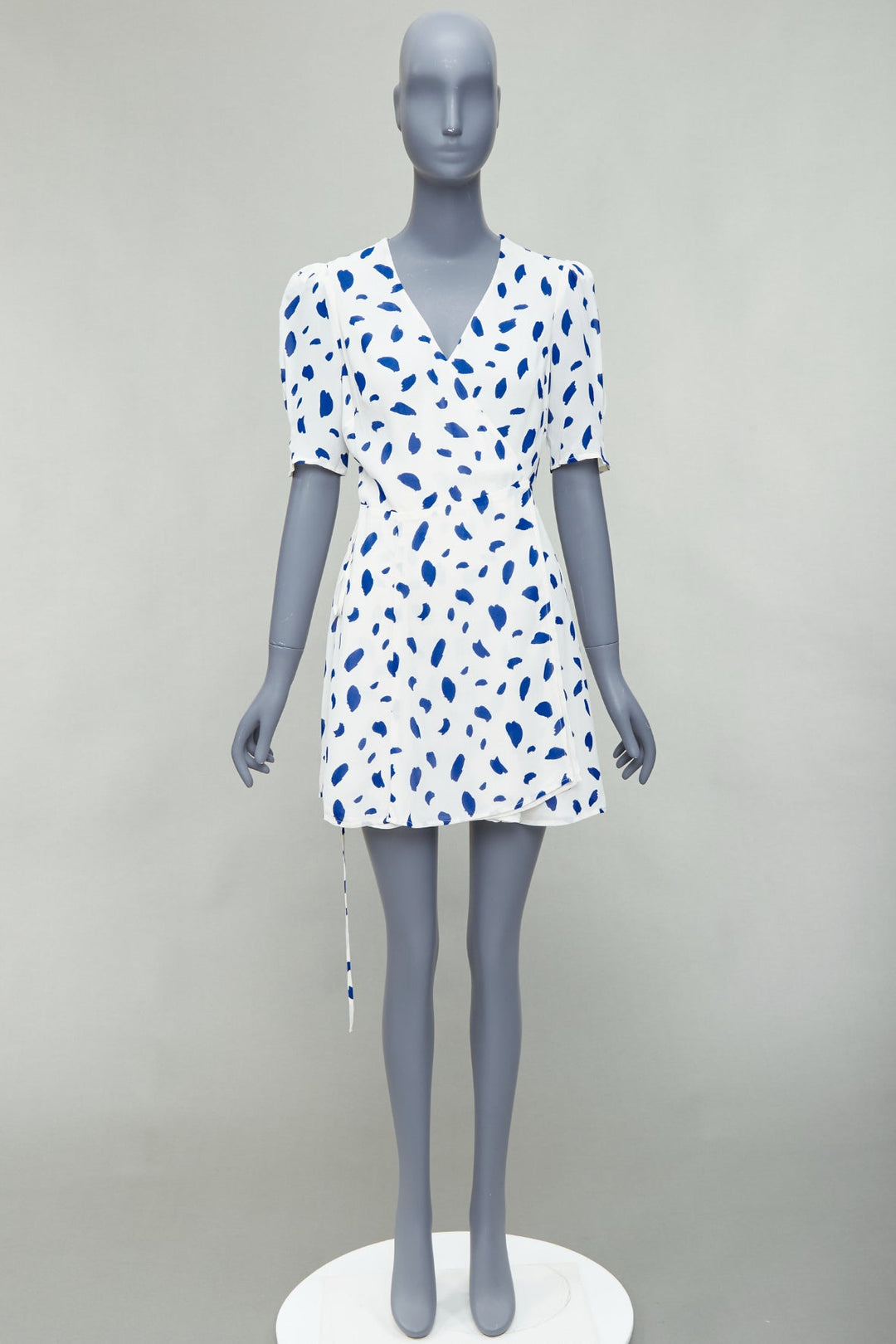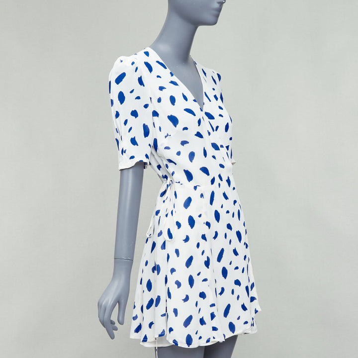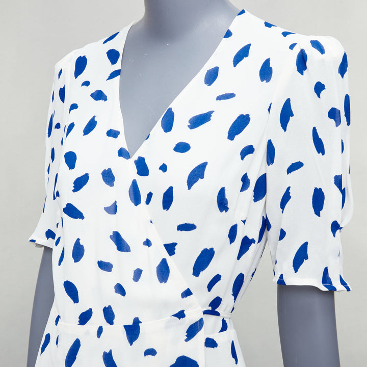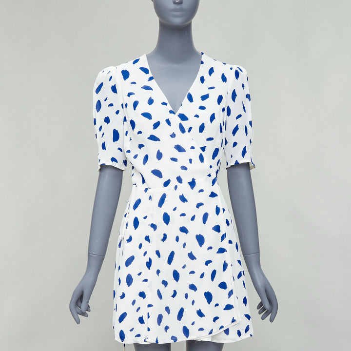 REFORMATION Lucky blue white Dalmatian print puff sleeve wrap dress M