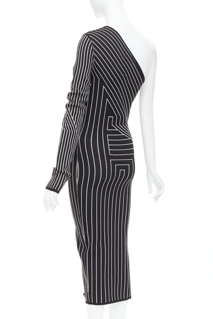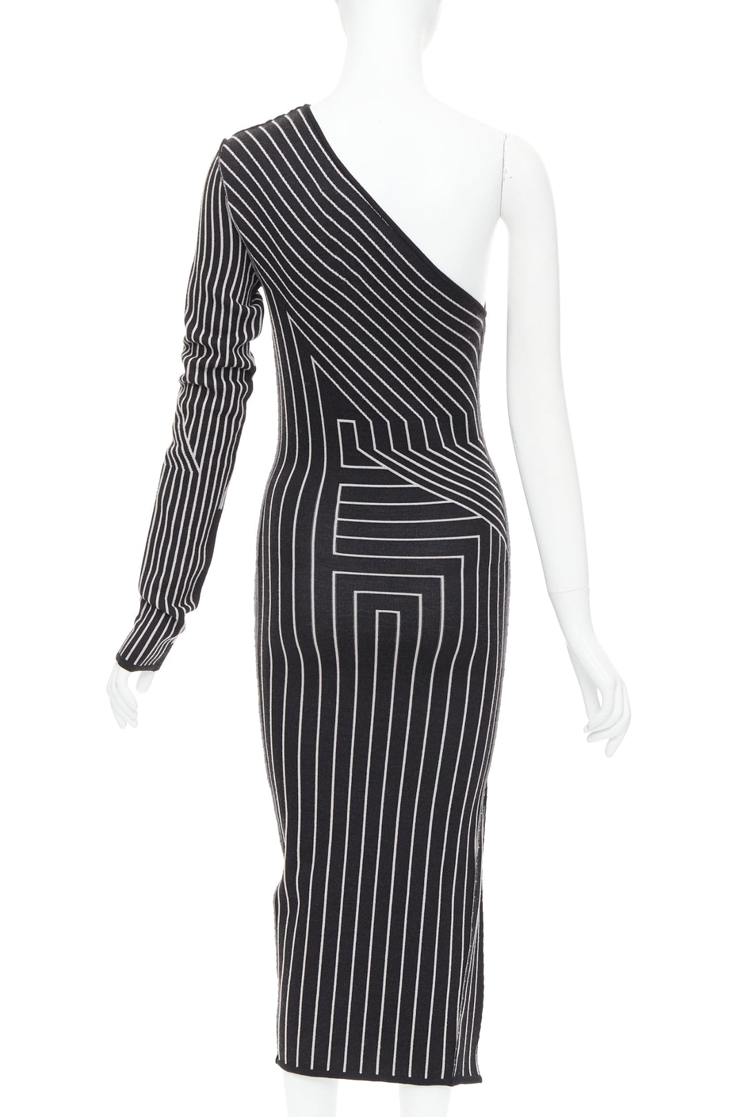 RICK OWENS 2020 Ziggy geometric graphic lines one shoulder high slit dress XS Rosalia