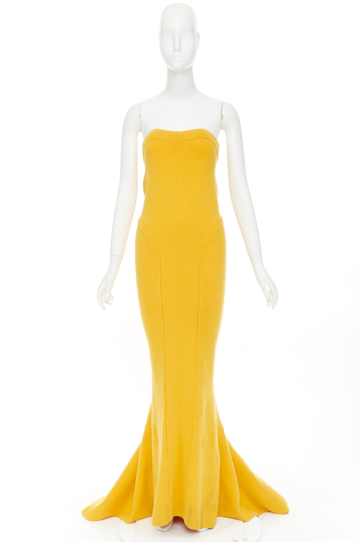 RICK OWENS 2022 Strobe Al mustard yellow cashmere blend panelled knitted maxi skirt S