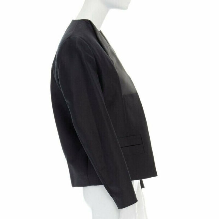 runway BALENCIAGA GHESQUIERE 2012 black leather panel collarless jacket FR34 XS