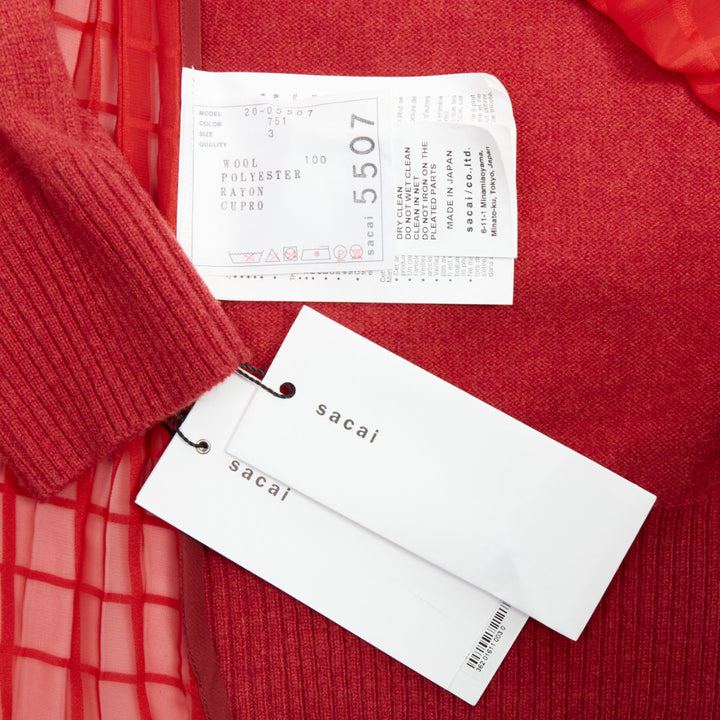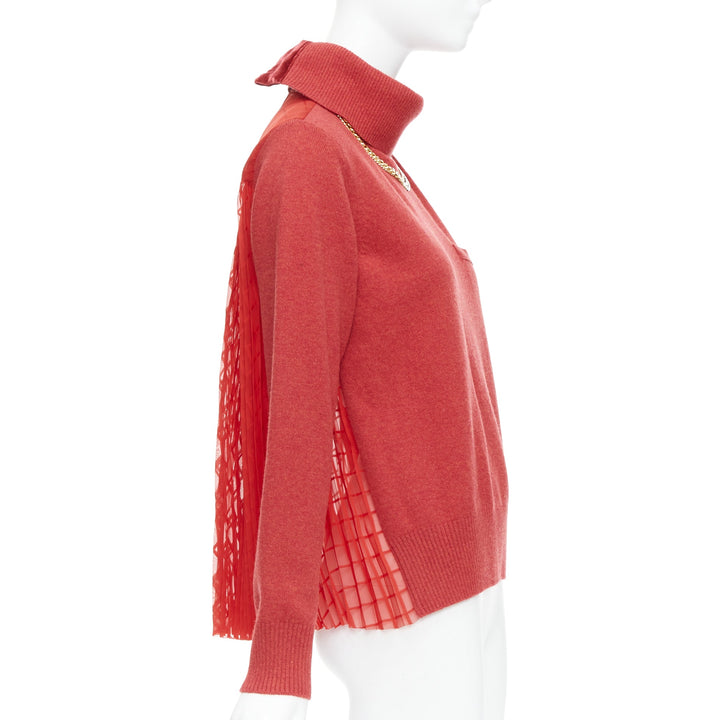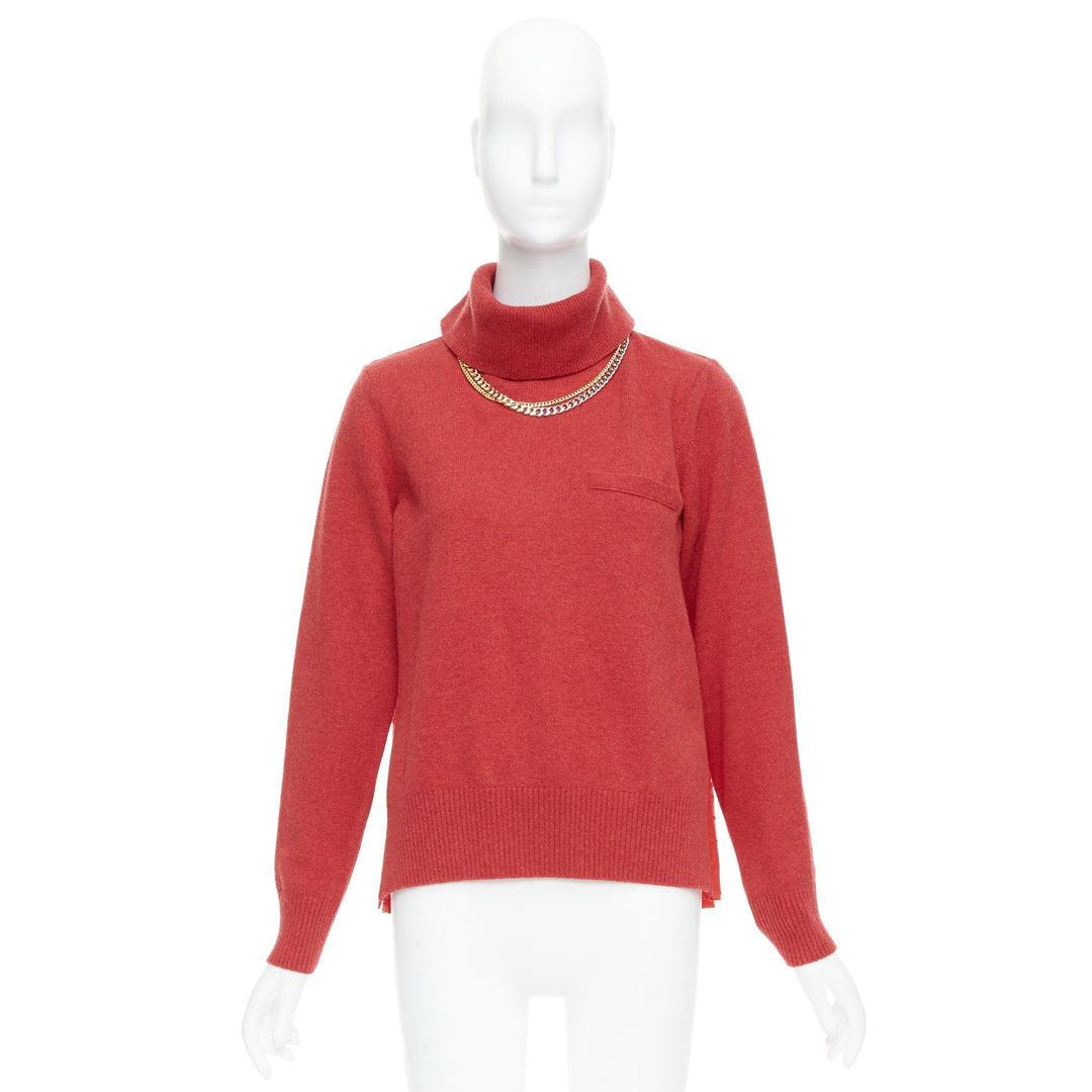 SACAI 2020 red 100% wool gold chain necklace turtleneck sweater top JP3 L