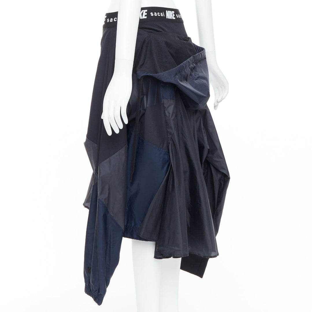 SACAI NIKE black navy nylon deconstructed windbreaker patchwork skirt S