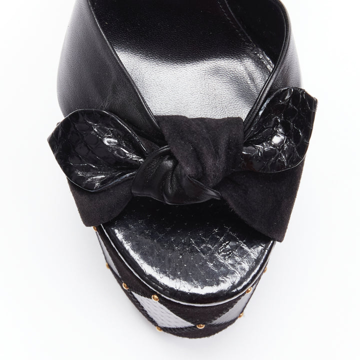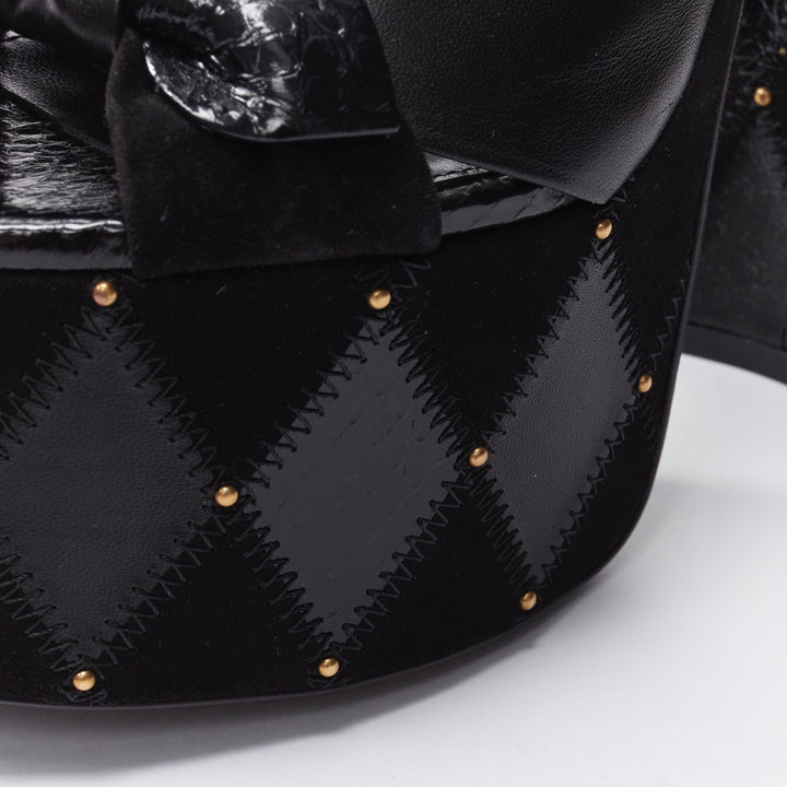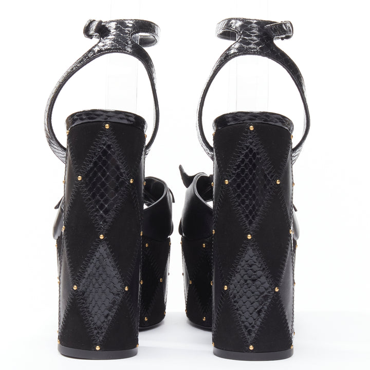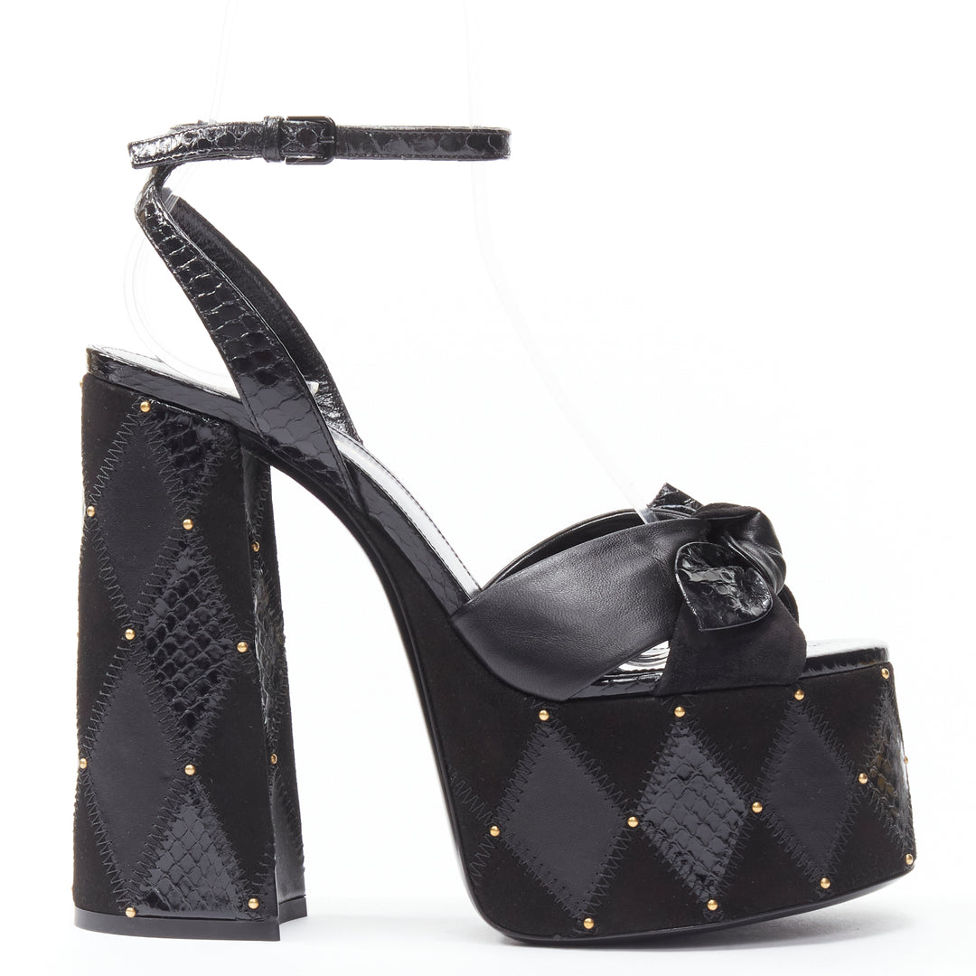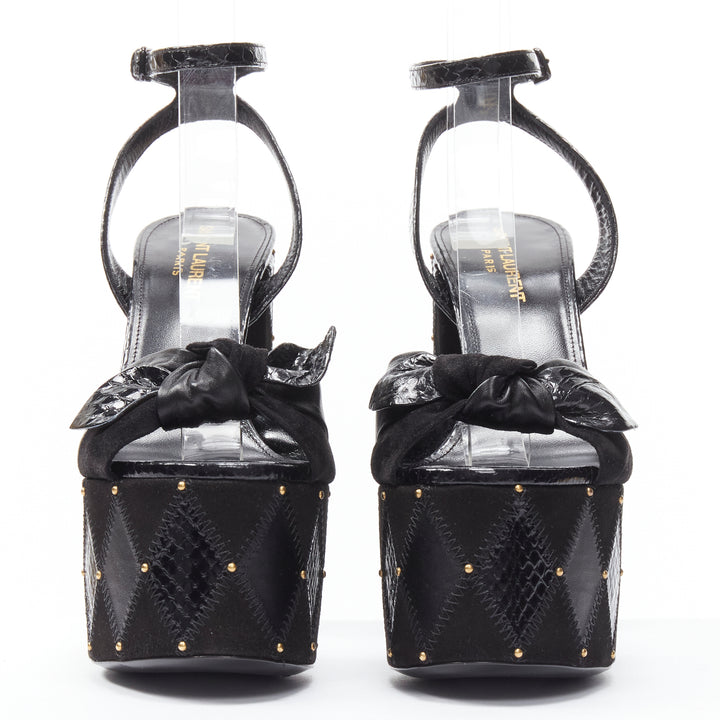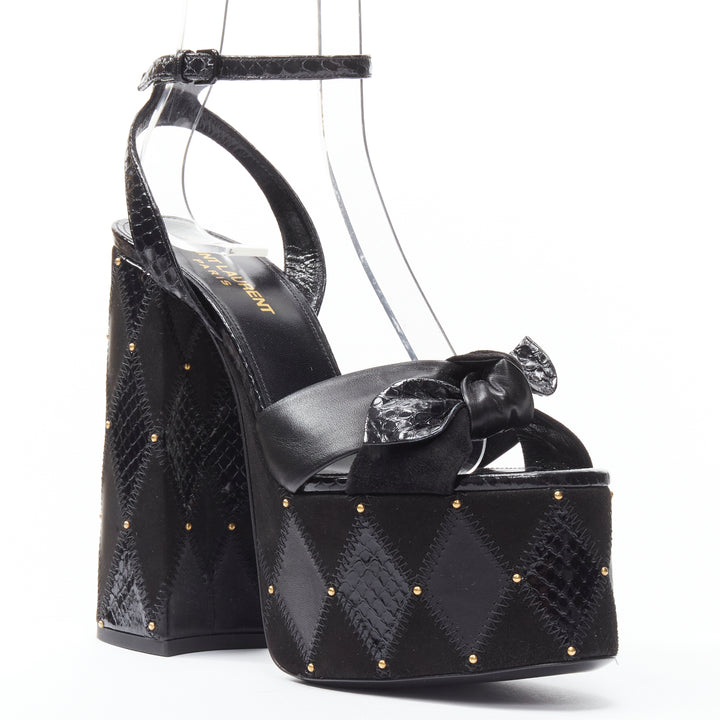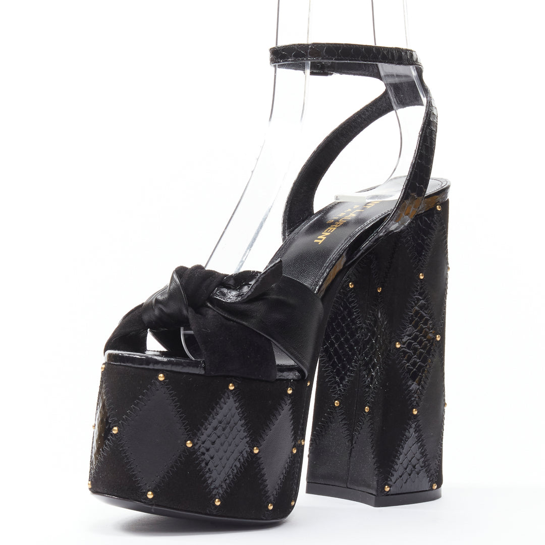 SAINT LAURENT Paige 85 Runway black patchwork stud platform sandals EU38