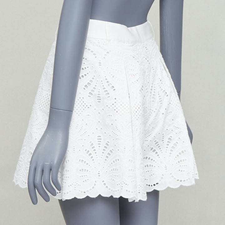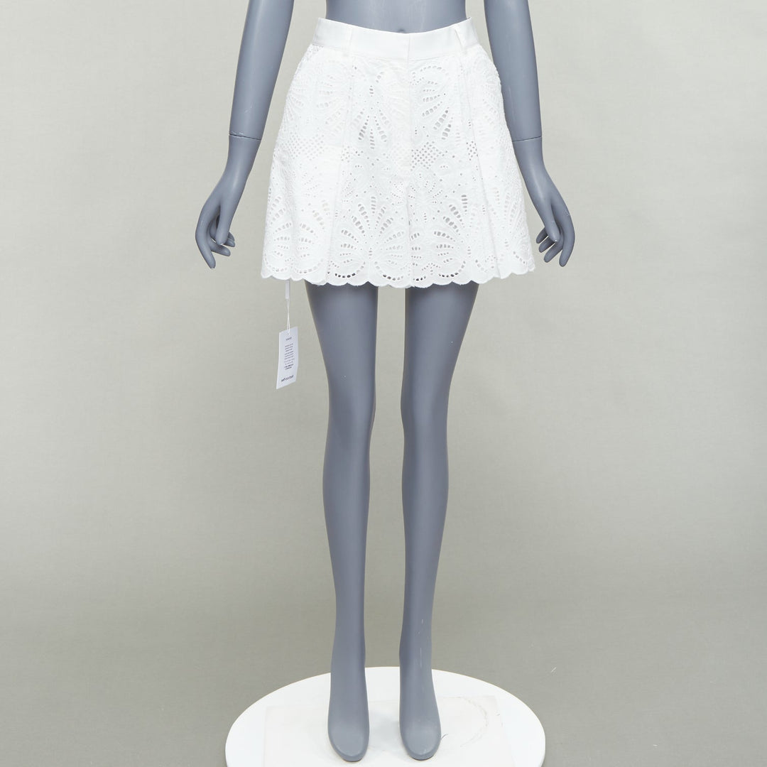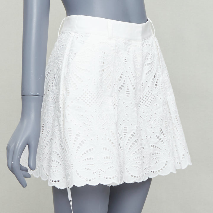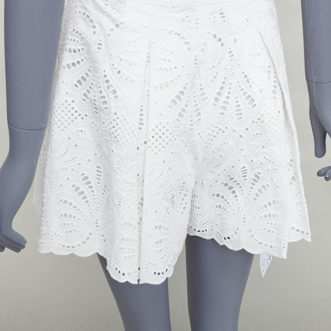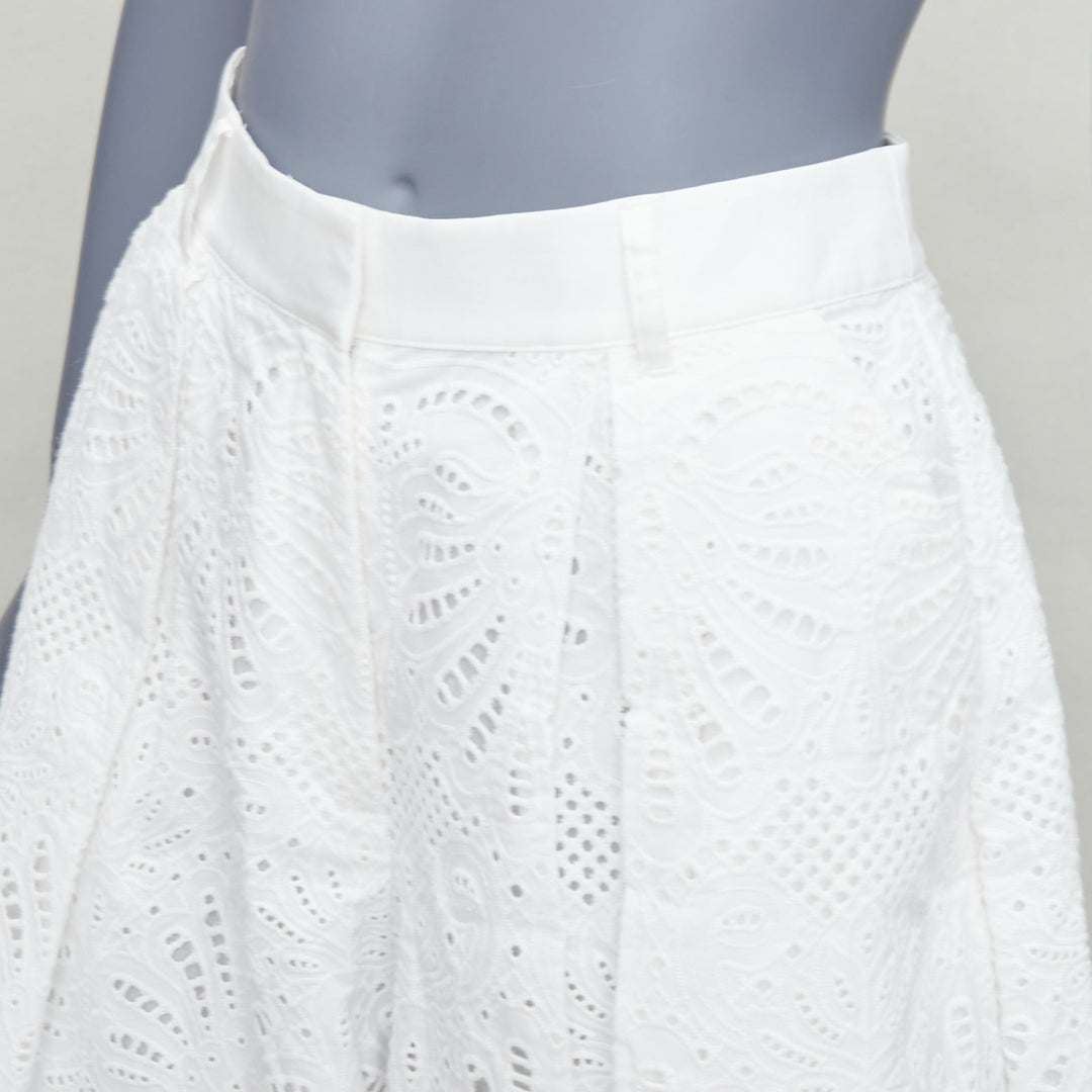 SELF PORTRAIT 2024 white floral anglais wide high waist shorts UK6 XS