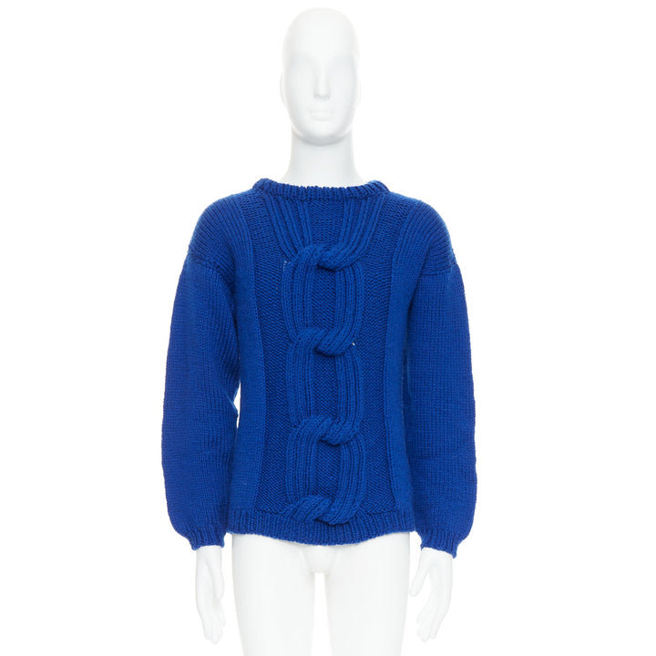 SIV STOLDAL 2008 Cover Up cobalt blue 100% wool cable knit sweater S
