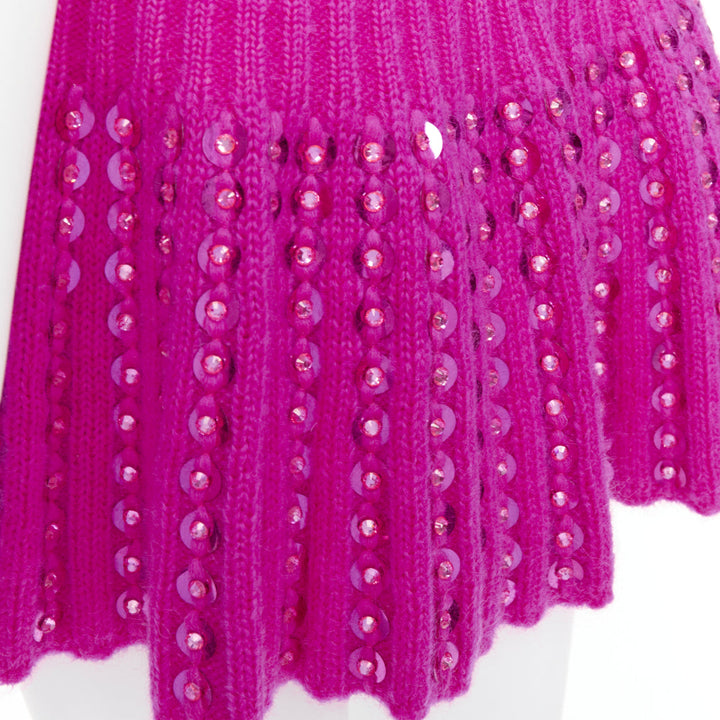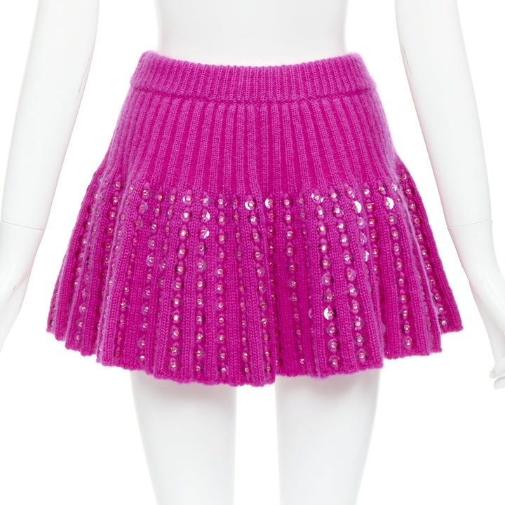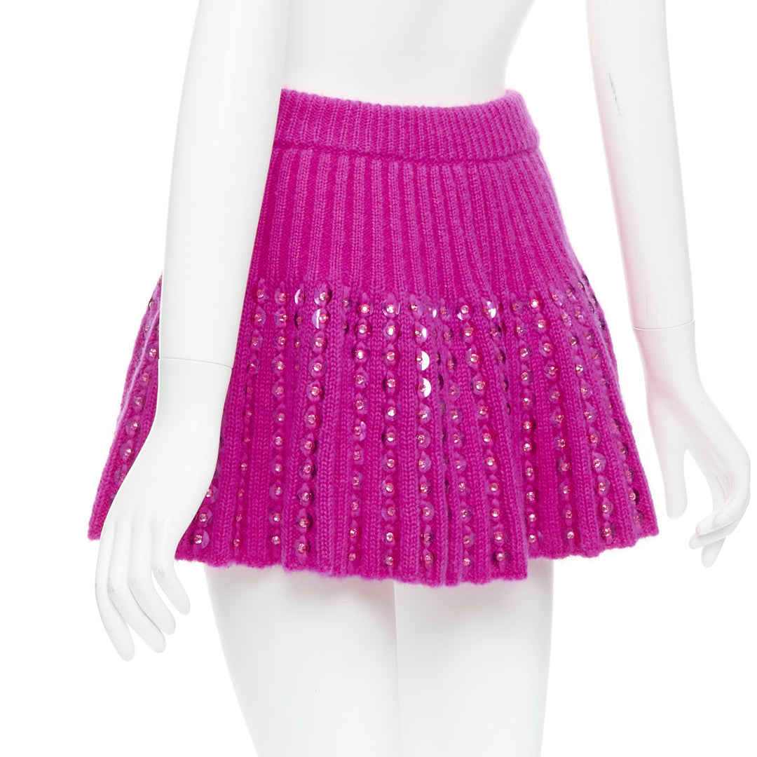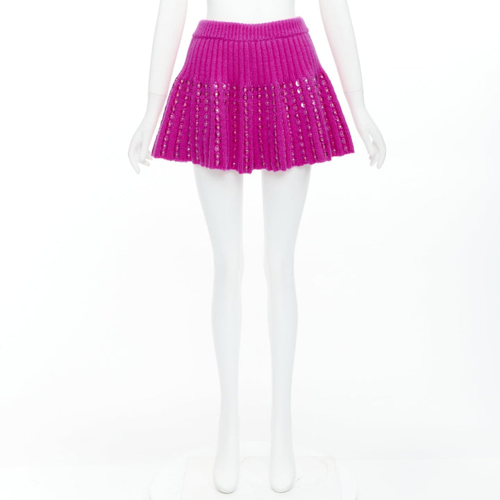 VALENTINO 2022 Runway PP Pink rhinestone embellished knitted mini flared skirt XS