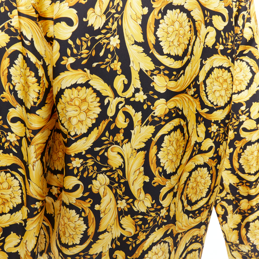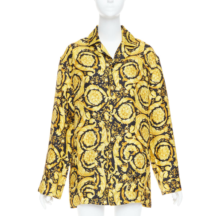 VERSACE 100% silk Signature Barocco Baroque black gold print pajama shirt Sz2 M