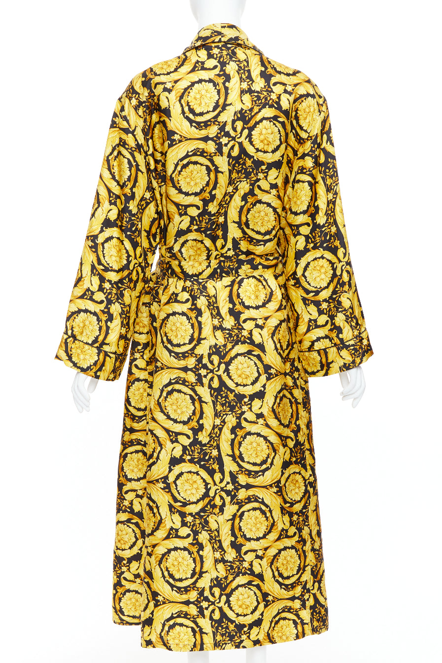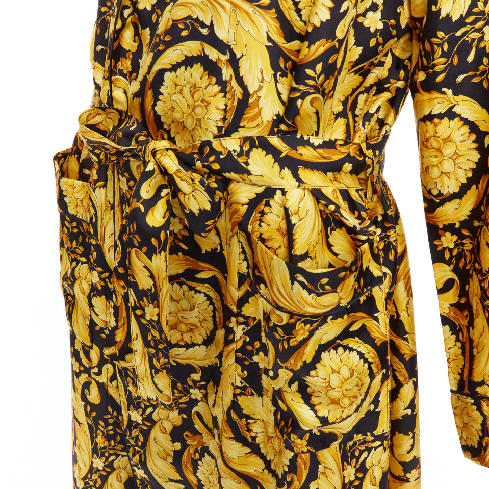 VERSACE 100% silk Signature Barocco Baroque print gold black robe gown Sz 2 M
