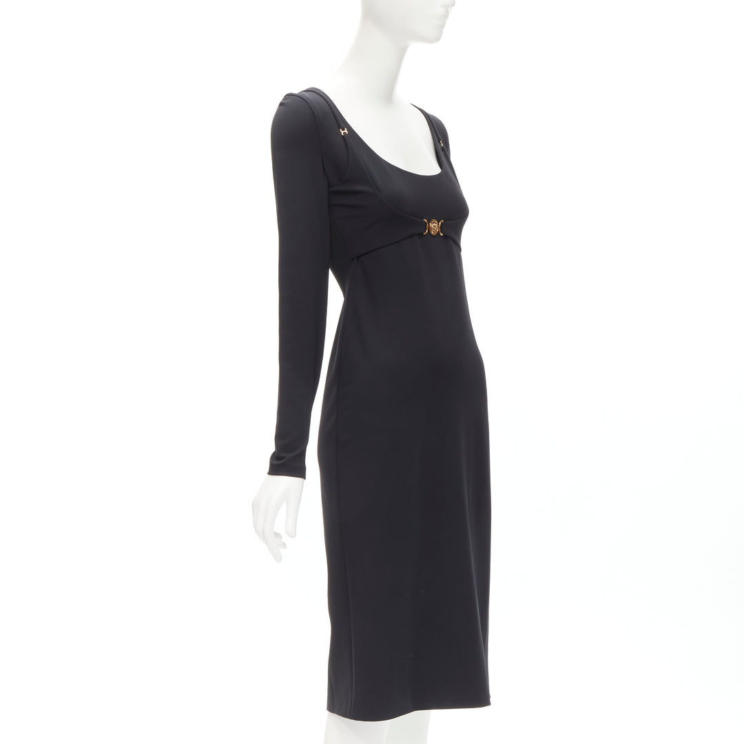 VERSACE 2021 Tresor De La Mer gold Medusa bustier harness dress IT38 XS