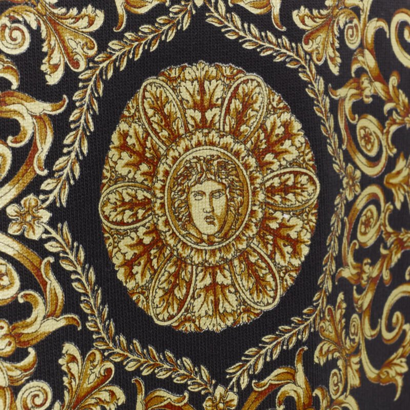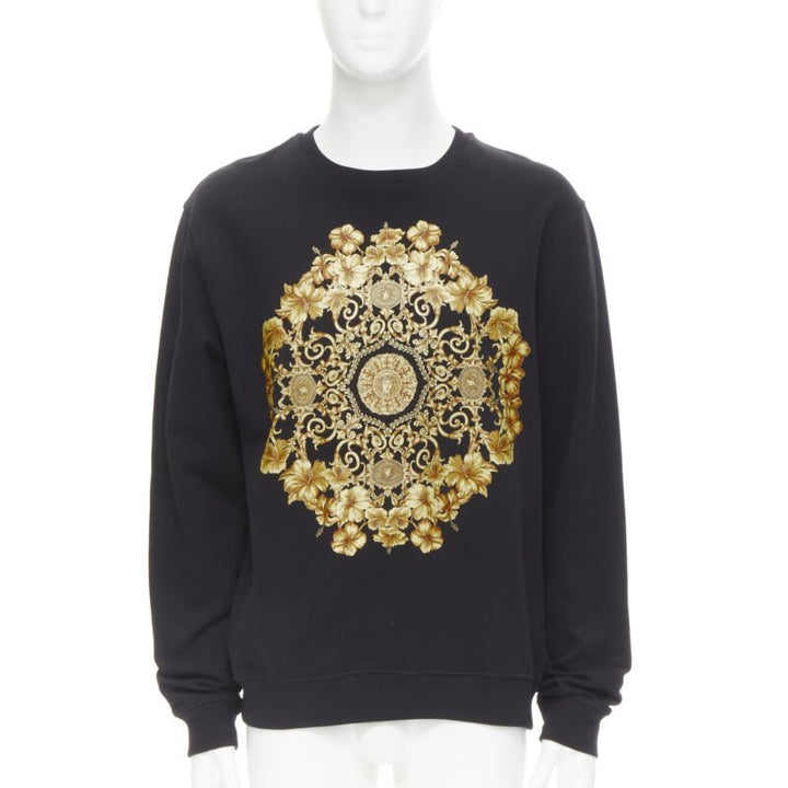 VERSACE black gold Barocco Hibiscus Medusa cotton crew sweater S