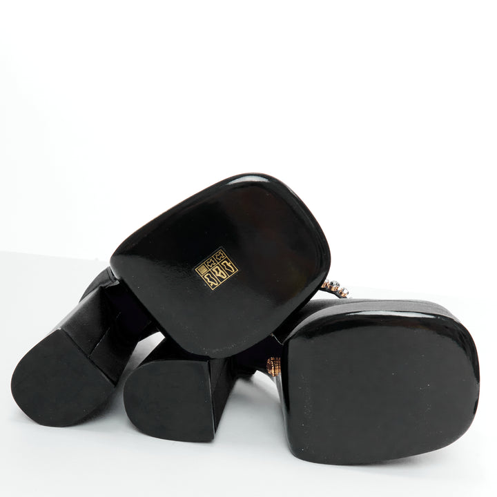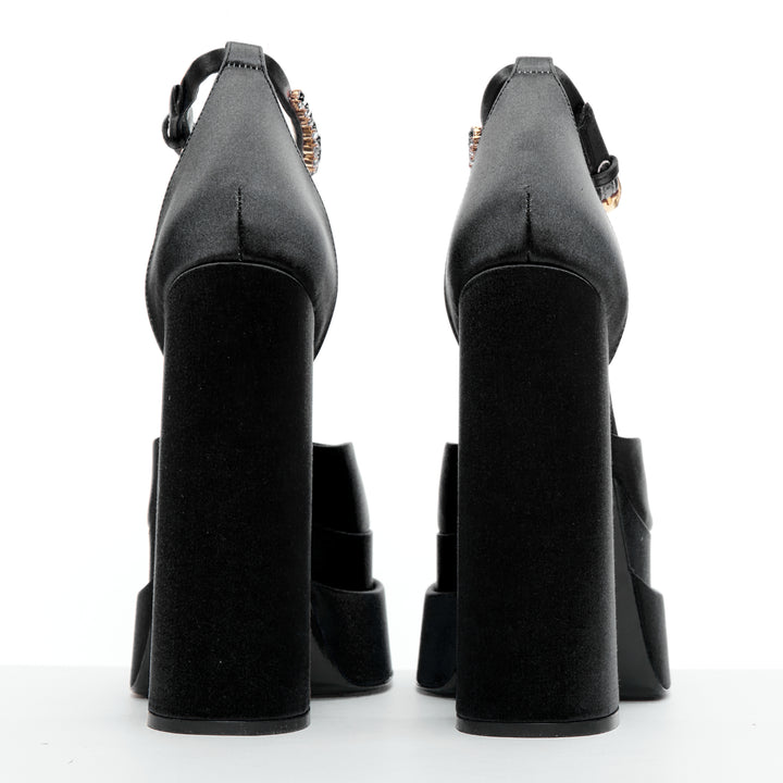 VERSACE Runway Aevitas 155 black satin gold crystal Medusa double platform EU41