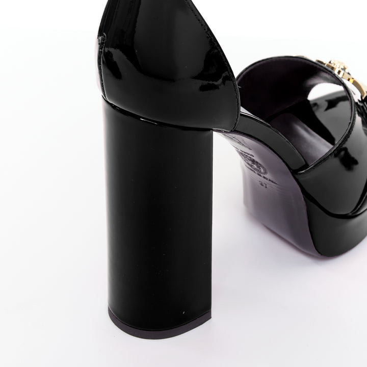 VERSACE Tribute black patent gold Medusa open toe platform sandal EU41
