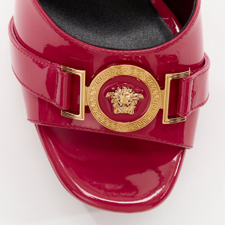 VERSACE Tribute fuschia pink patent Medusa emblem open toe platform sandal EU41