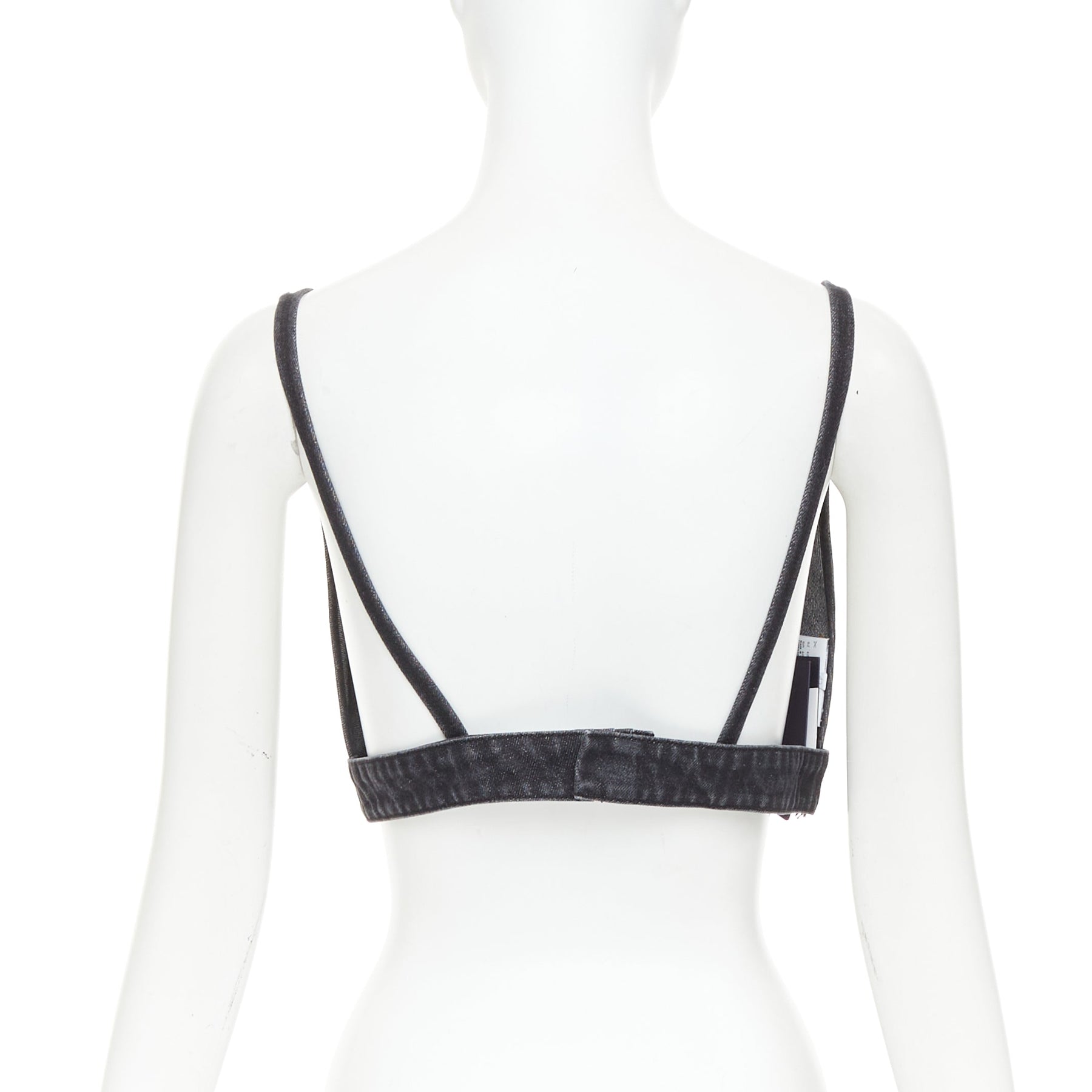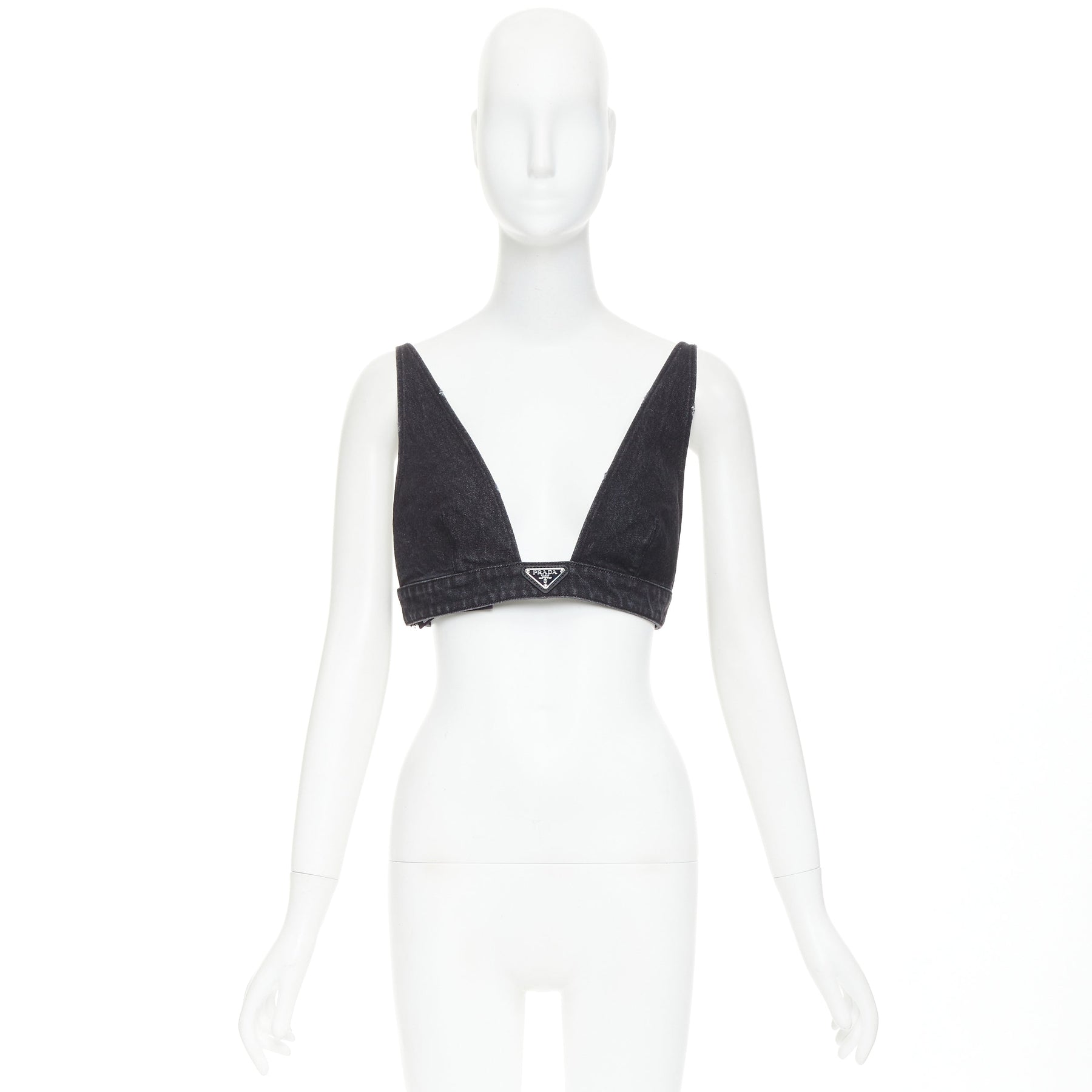 PRADA 2022 dark grey denim black triangle logo plaque bralette crop top IT40 S