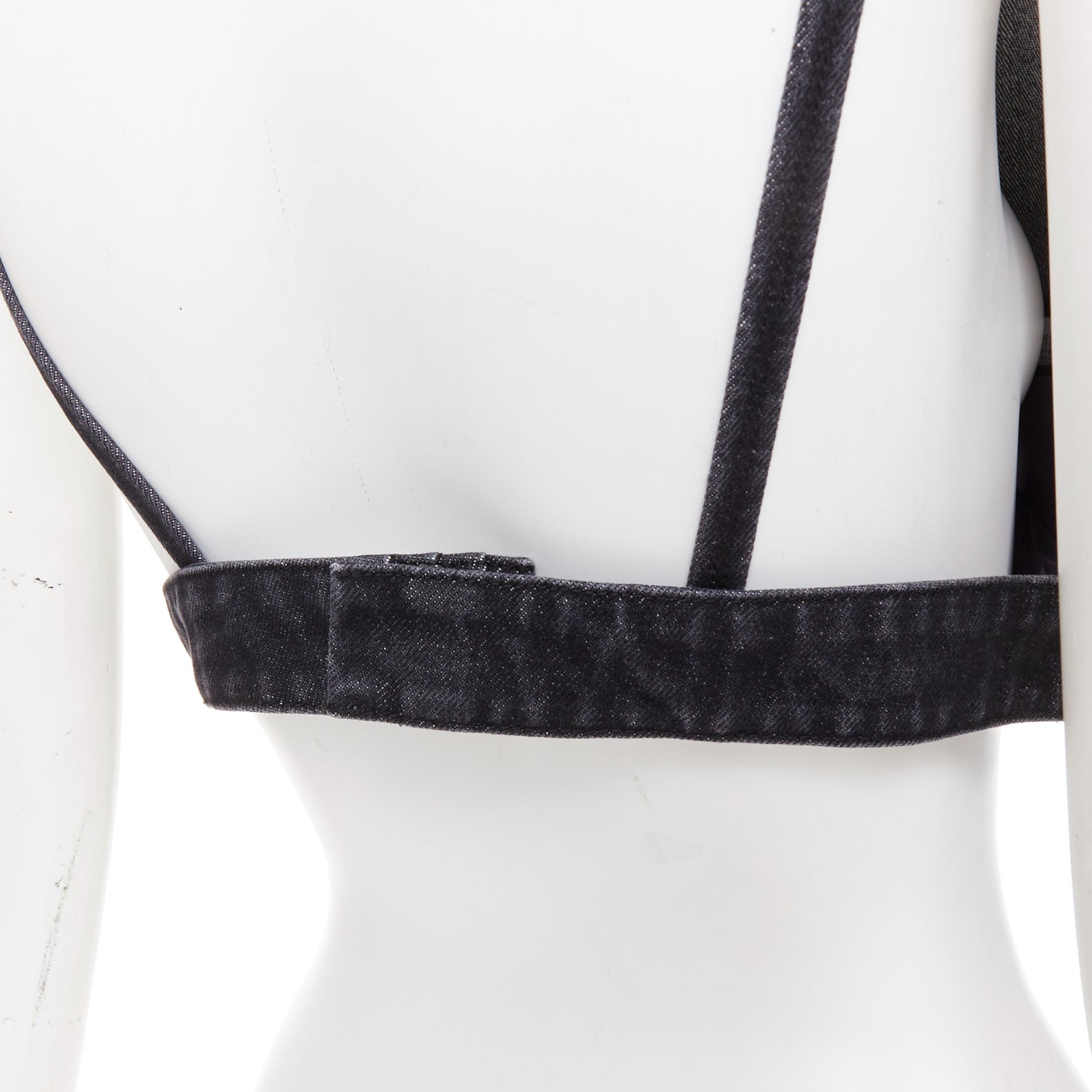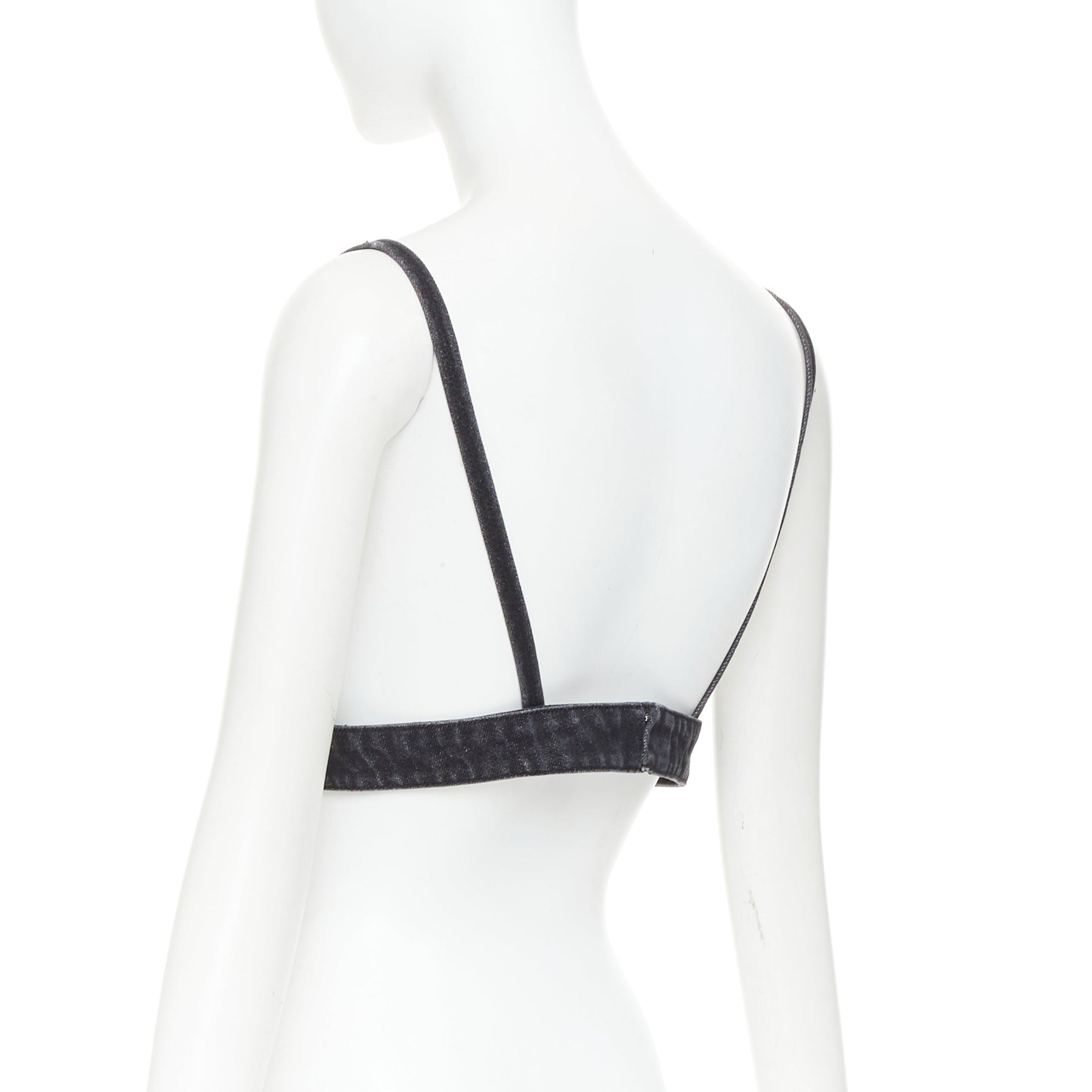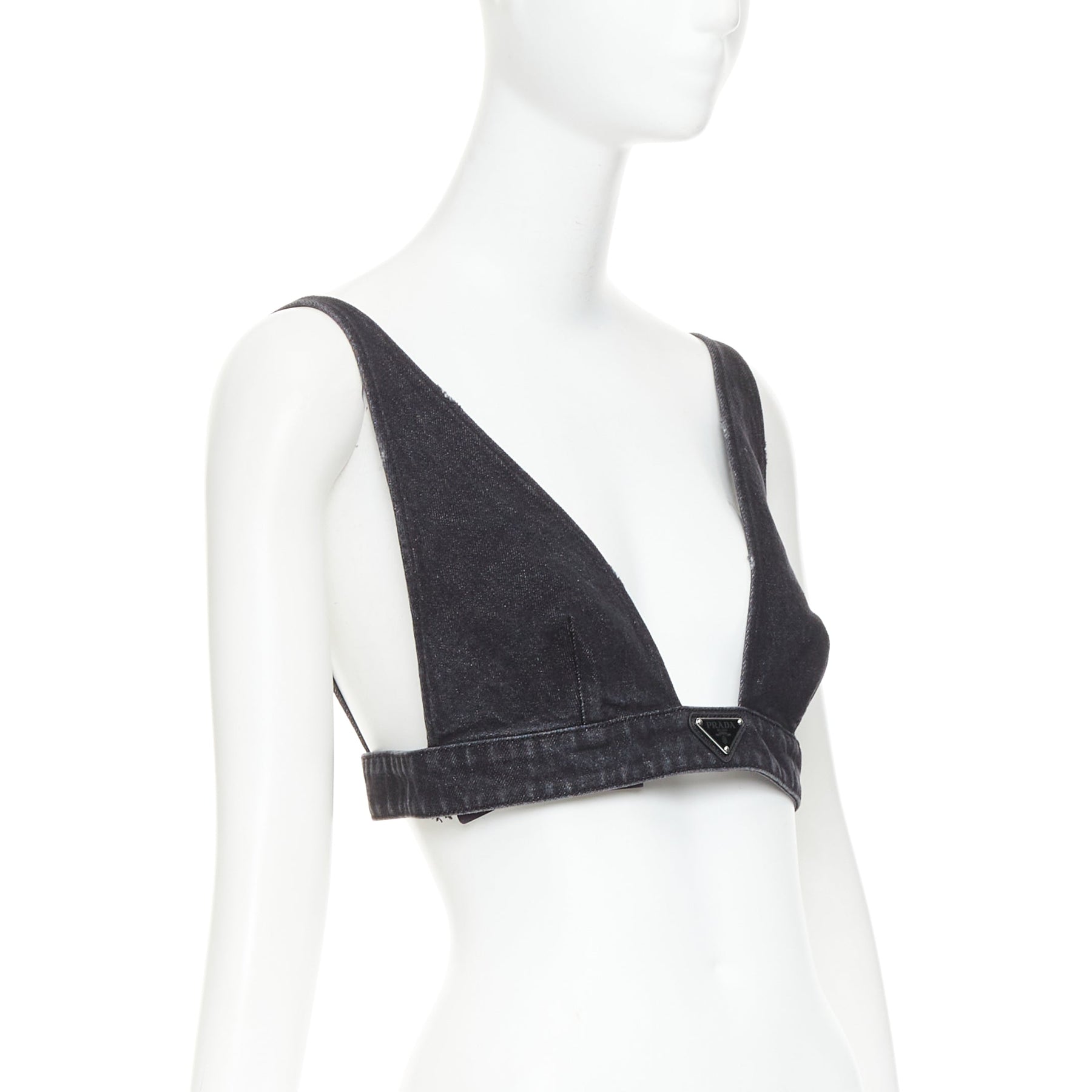 PRADA 2022 dark grey denim black triangle logo plaque bralette crop top IT42 M