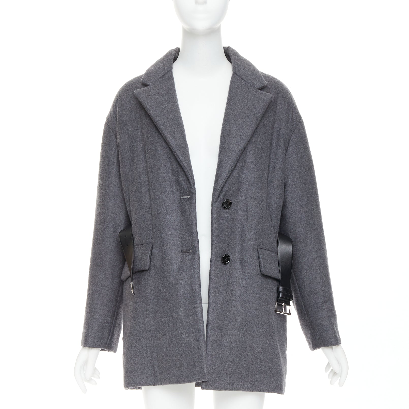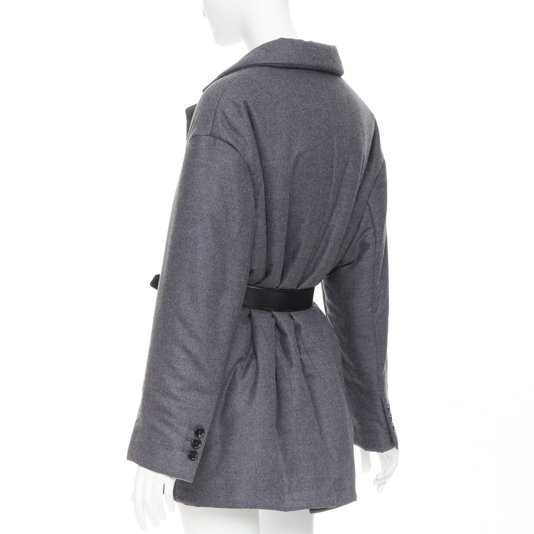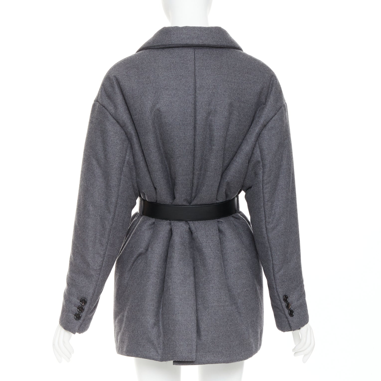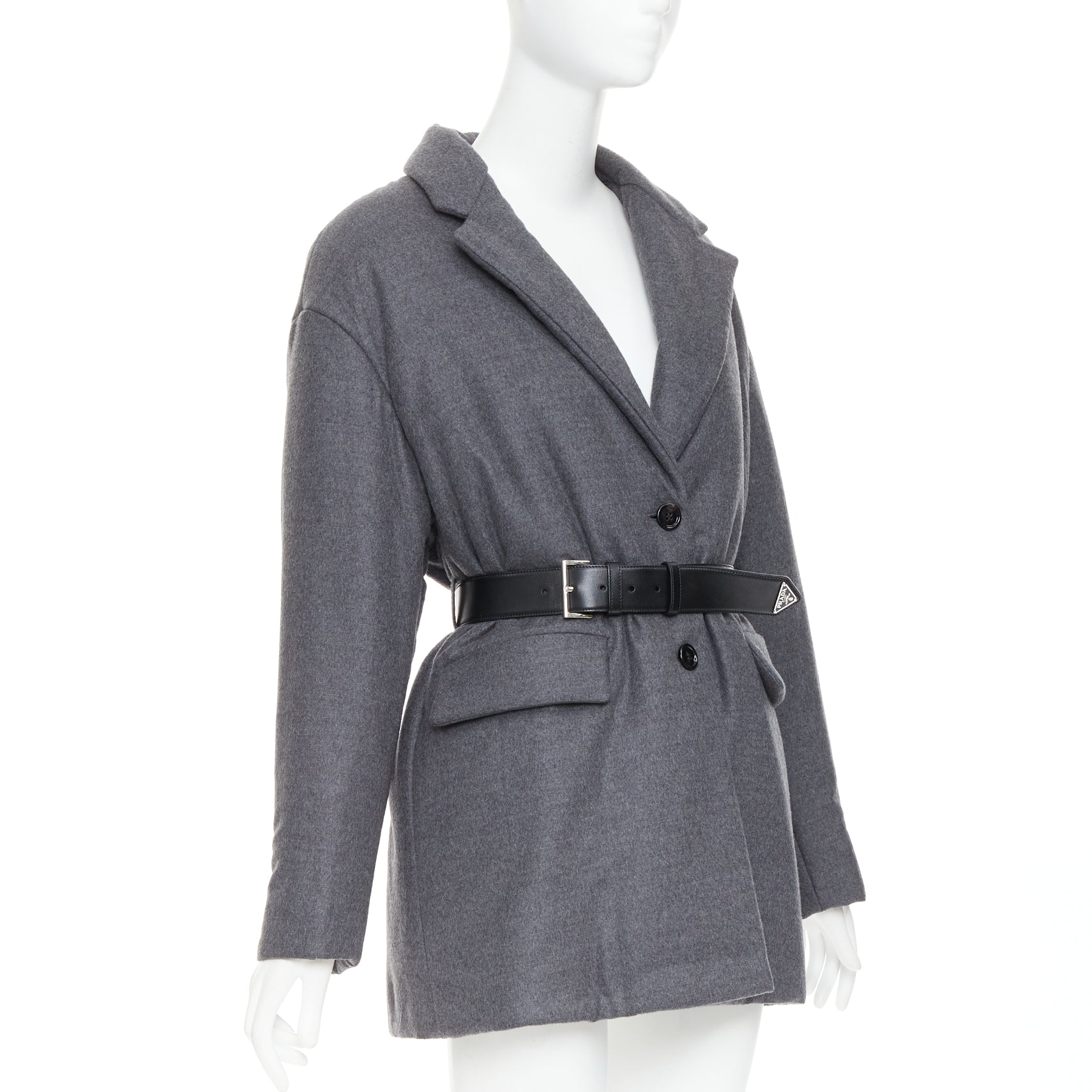 PRADA 2022 grey cashmere wool silver logo leather belted padded coat IT40 S