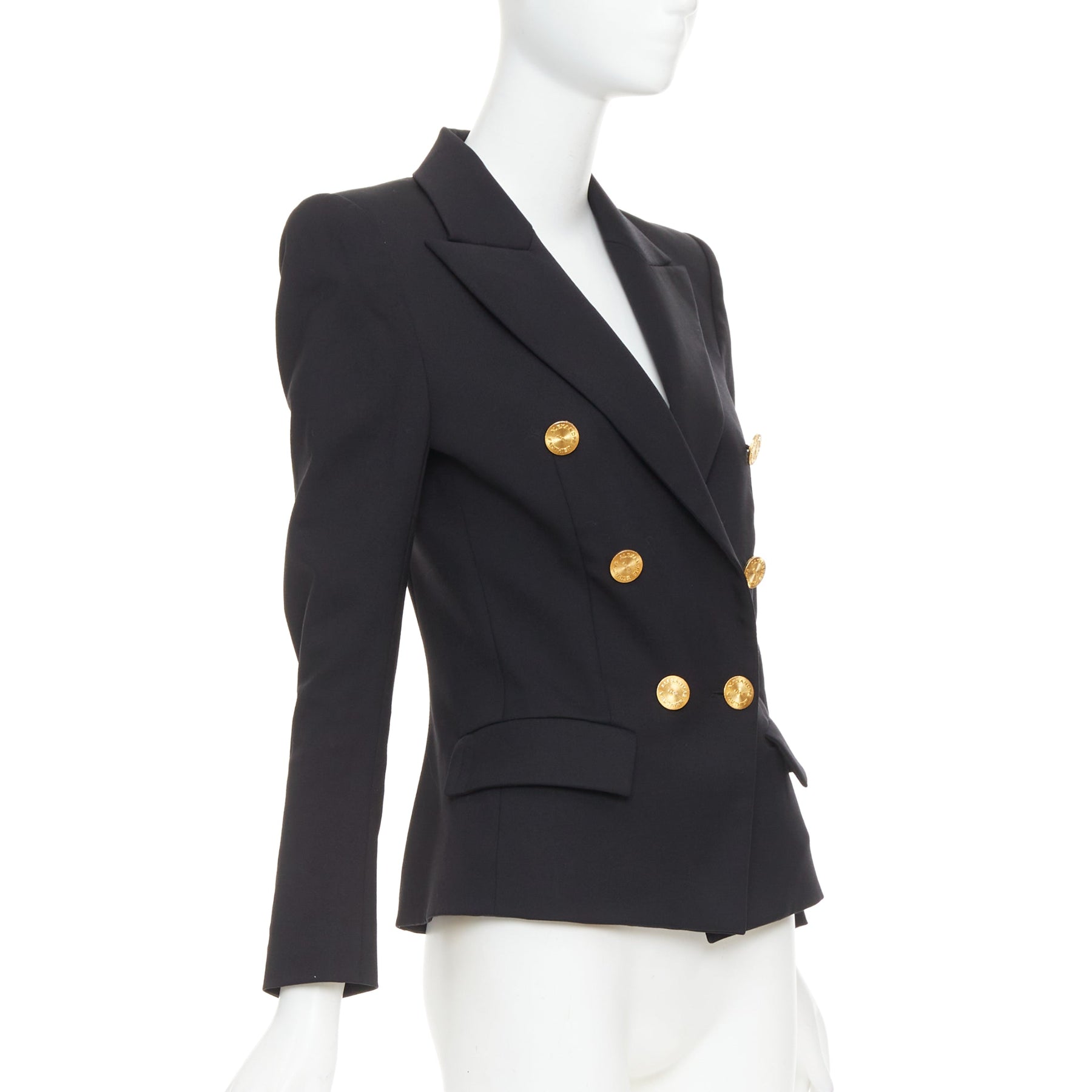 ALEXANDRE VAUTHIER black wool gold sunburst buttons double breasted blazer jacket