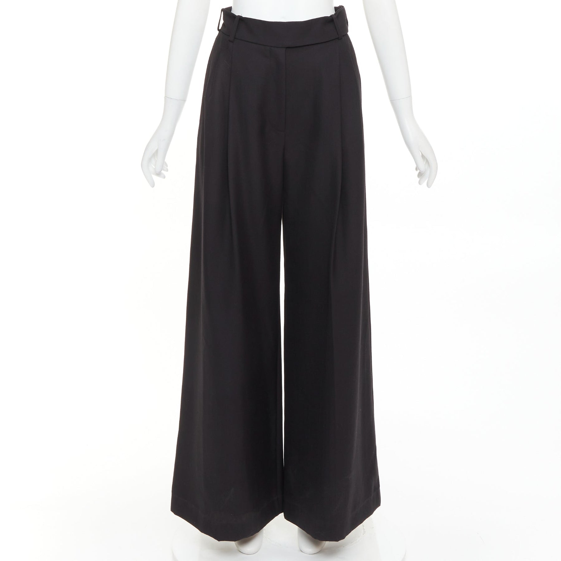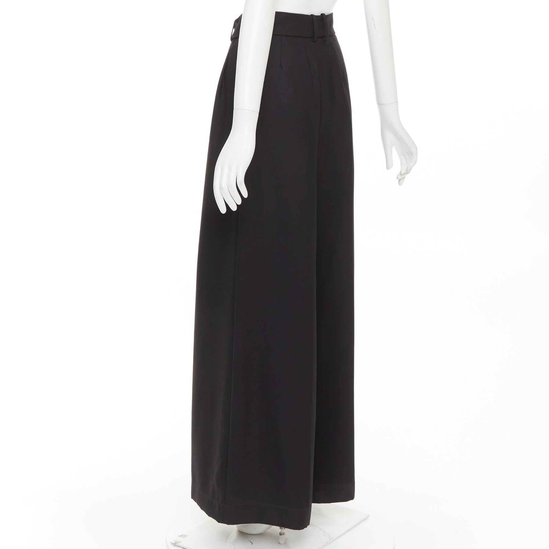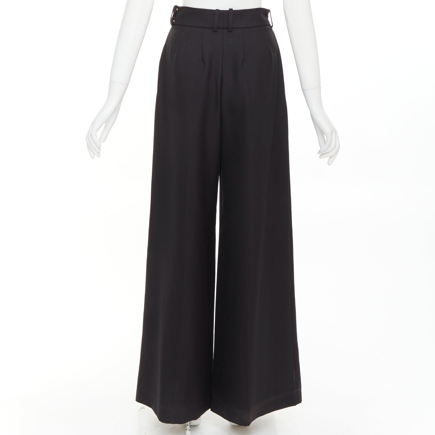 ALEXANDRE VAUTHIER COUTURE black wool blend dart pleat high waisted wide leg pants