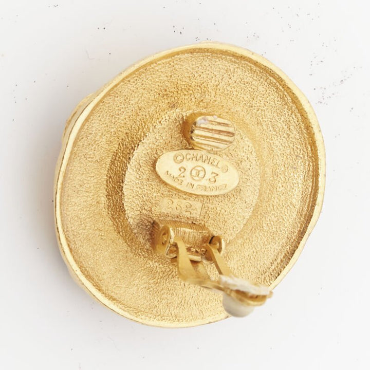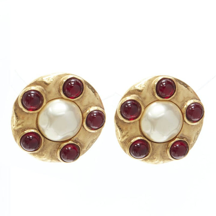 CHANEL Vintage 1990's Collection 23 gold red Gripoix faux pearl clip on earrings