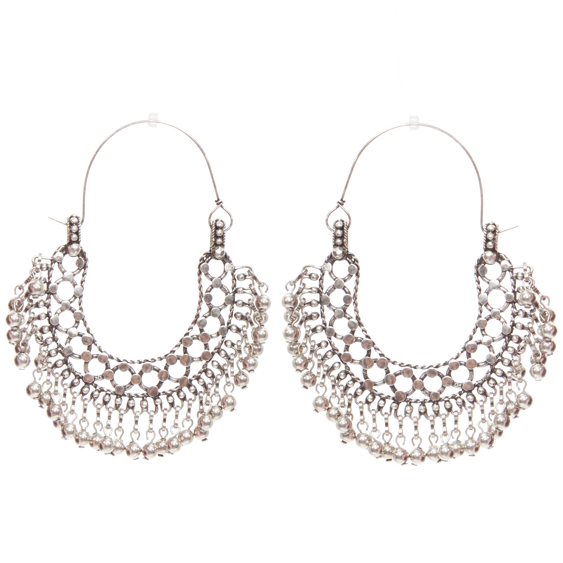 SAINT LAURENT Marrakech Folk dangling bells ethnic silver brass hoop earring
