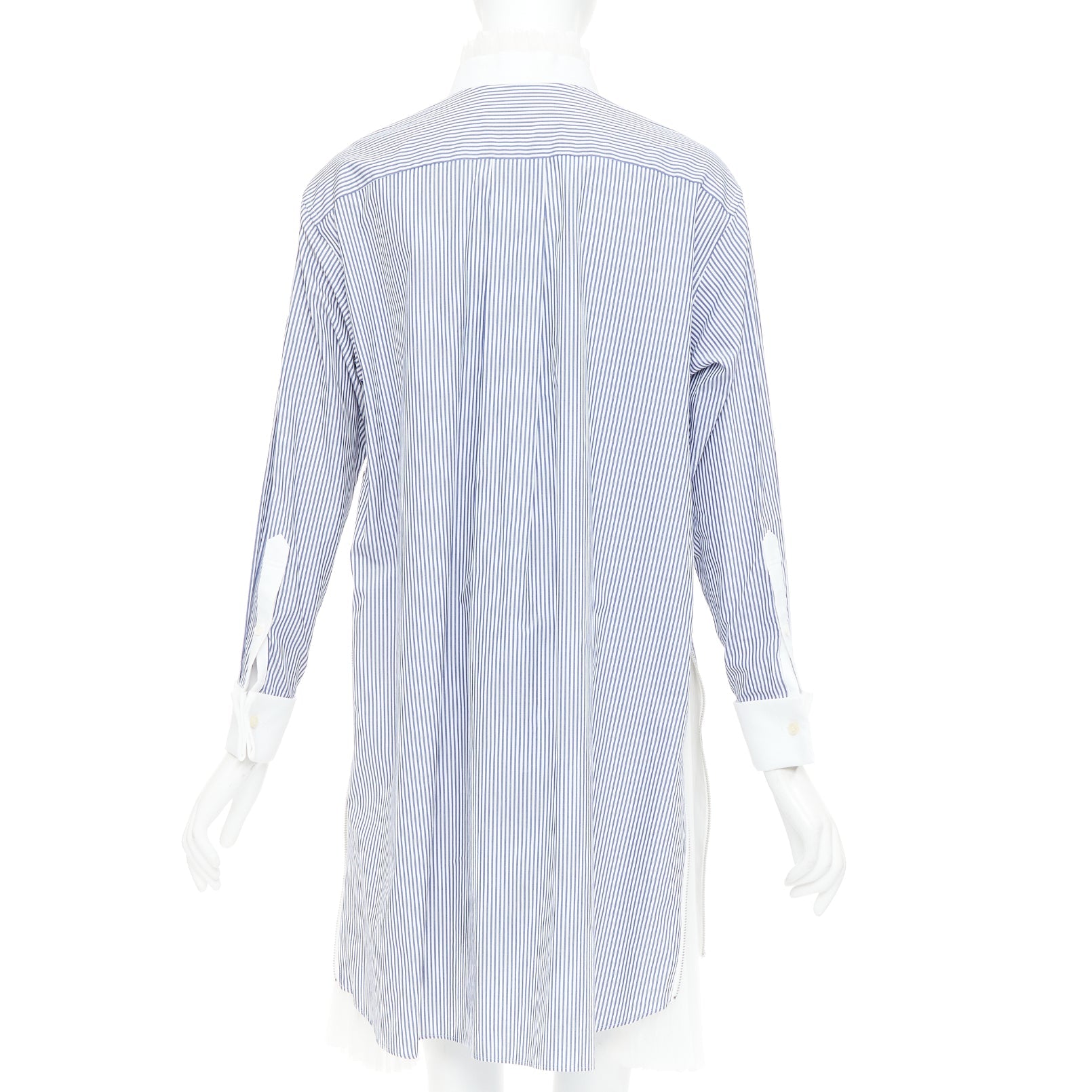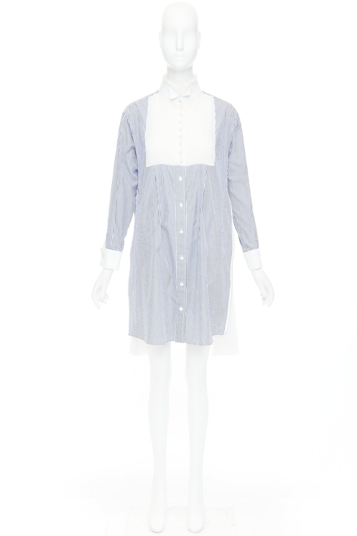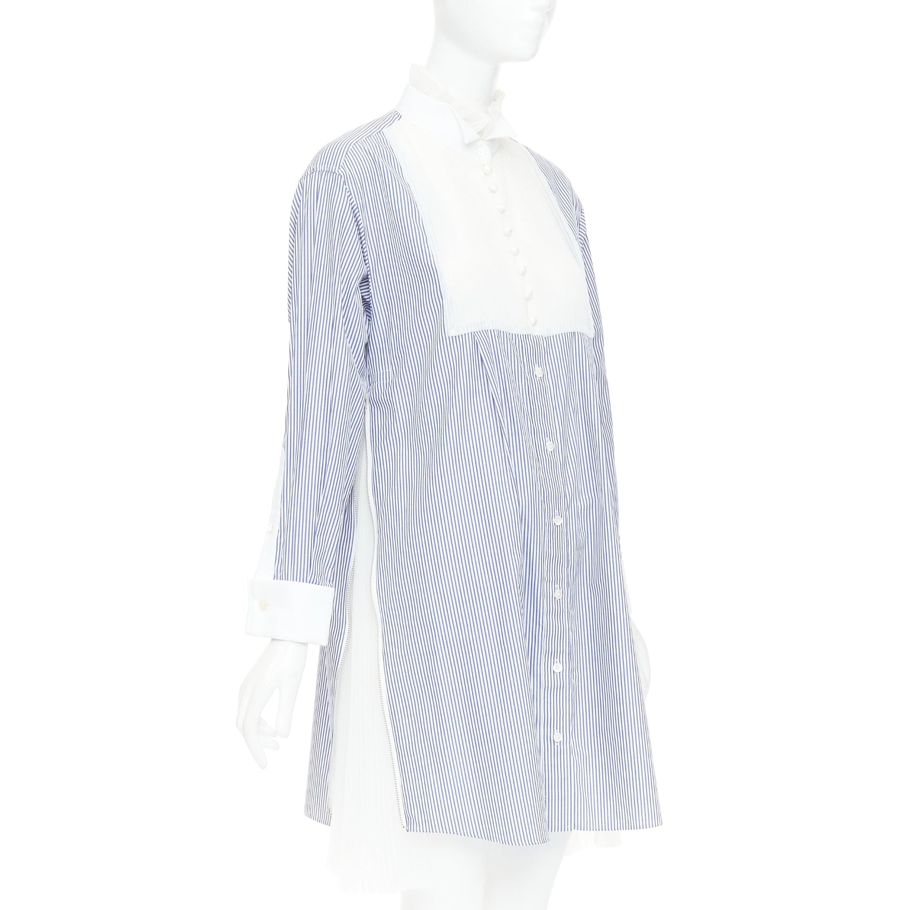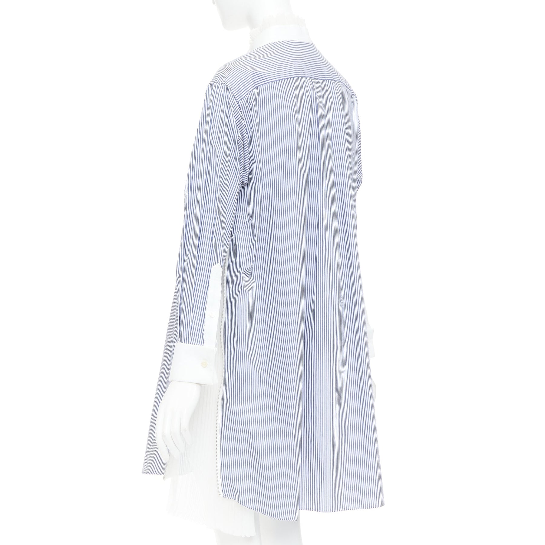 SACAI 2017 blue white striped cotton poplin bib collar ruffle shirt dress JP1 S