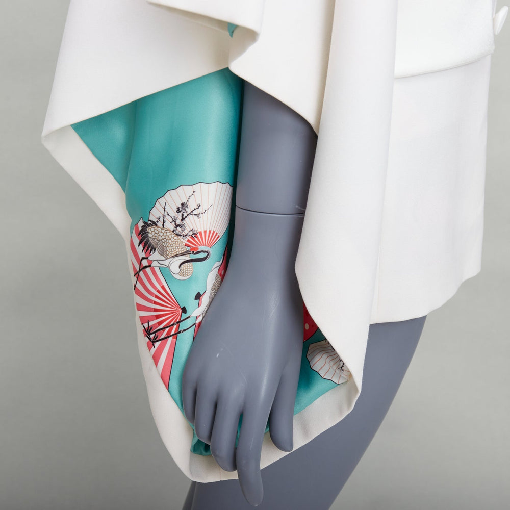 RACIL Kyoto Kimono cream satin print lined cape sleeve tuxedo jacket